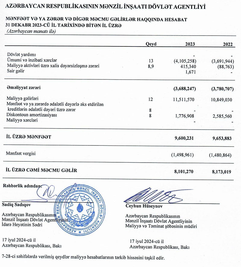 Mənzil İnşaatı Dövlət Agentliyi vəsaitinin böyük hissəsini dövlət qiymətli kağızlarına yatırıb.Mənzil İnşaatı Dövlət Agentliyi (MİDA) 2023-cü ili 8 milyon 101 min manat xalis mənfəət ilə vurub. Agentlik 2022-ci ili 8 milyon 173 min manat xalis mənfəət ilə bağlamışdı. Beləliklə, ötən il Mənzil İnşaatı Dövlət Agentliyinin xalis mənfəəti cüzi azalıb.