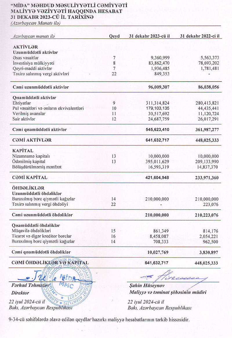 MİDA ŞİRKƏTİNİN XƏRCLƏRİ ARTIB, XALİS MƏNFƏƏTİ AZALIB