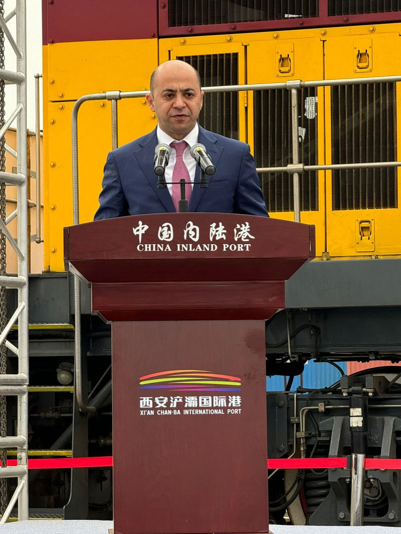 Sərgi və forum çərçivəsində Çinin Sian quru limanı və Qazaxıstan-Çin birgə terminalına baxış keçirən ADY nümayəndə heyəti Sian limanından Avropaya konteyner blok qatarının yola salınması mərasiminə qatılıb.
