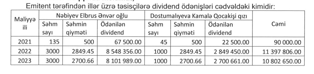 Hazırda "Diadem" ASC-nin səhmdarları Nəbiyev Elbrus Ənvər oğlu (75%) və Dostumalıyeva Kamalə Qocakişi qızıdır (25%).