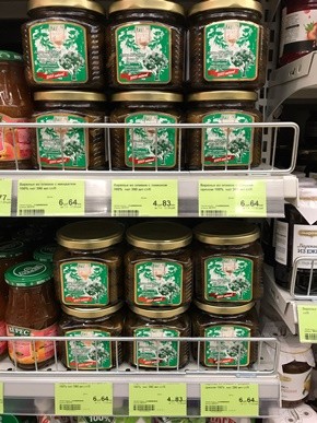 Ümumi sahəsi 529 m² olan Azərbaycan Ticarət Evinin 364 m²-lik sahəsində Azərbaycan məhsullarının daimi sərgisi fəaliyyət göstərir. Sərgidə Azərbaycan müəssisələrinin istehsal etdiyi müxtəlif növ ərzaq və qeyri-ərzaq məhsulları, o cümlədən meyvə-tərəvəz və onlardan emal olunmuş məhsullar (meyvə şirələri, kompotlar, konservlər, mürəbbələr, turşular, bitki yağları), çay, mineral sular, spirtli içkilər (şərab, konyak), xalça, tekstil, ipək və kosmetika malları, elektrik avadanlıqları, plastik məmulatlar və s. nümayiş olunur.