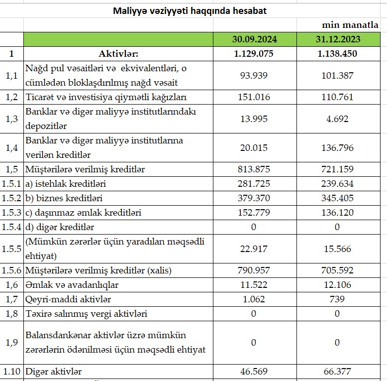 2023-cü ilin sonu ilə müqayisədə 2024-cü ilin 9 ayı ərzində (yanvar-sentyabr) "Rabitəbank" ASC-nin kredit portfeli (müştərilərə verilmiş kreditlər) 92 milyon 716 min manat və ya 12,8% artaraq 30 sentyabr 2024-cü il tarixində 813 milyon 875 min manat təşkil edib.