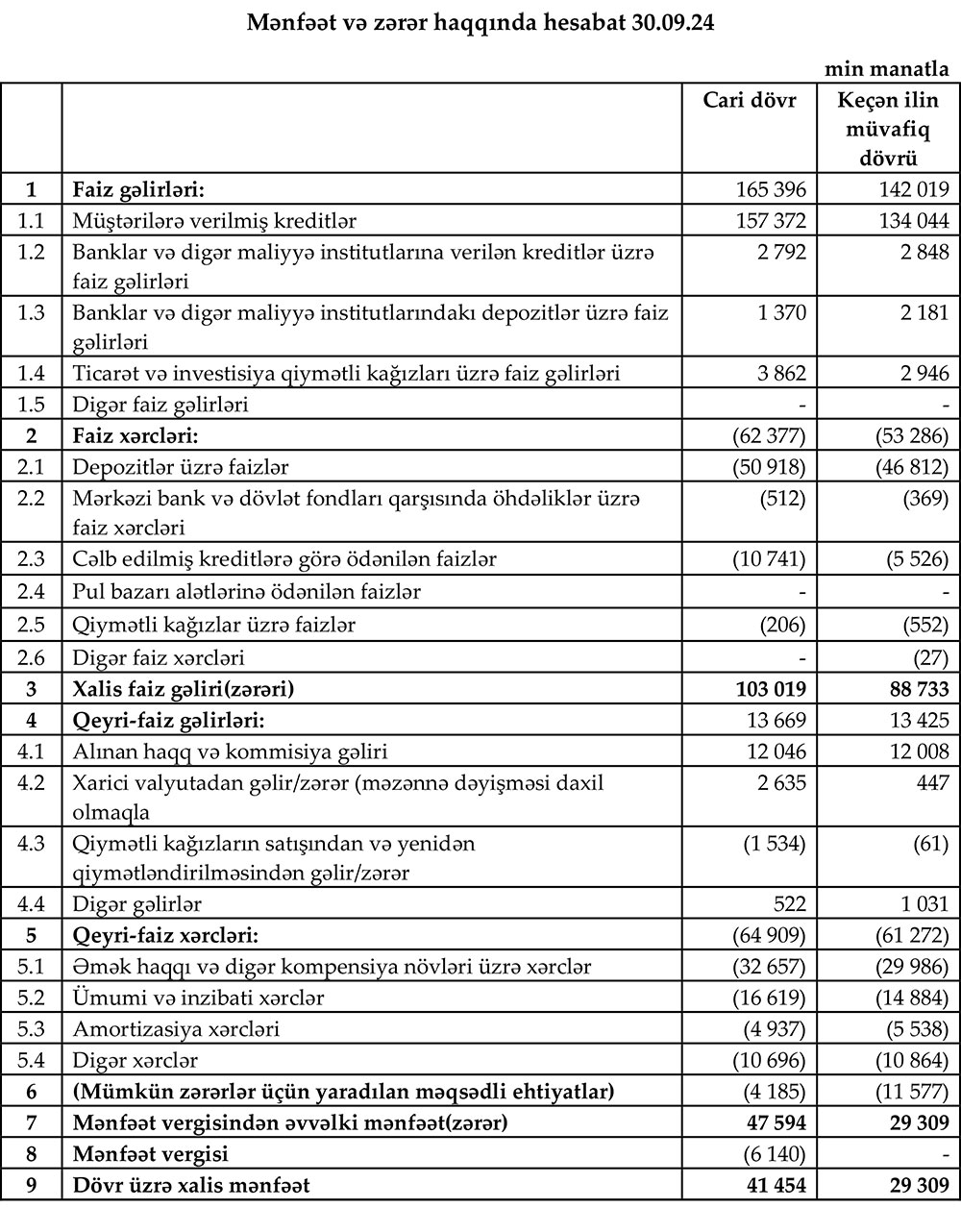 2023-cü ilin 9 ayının yekunu ilə müqayisədə 2024-cü ilin 9 ayı ərzində"AccessBank"ın qeyri-faiz gəlirləri isə 244 min manat artaraq 13 milyon 669 min manat təşkil edib.