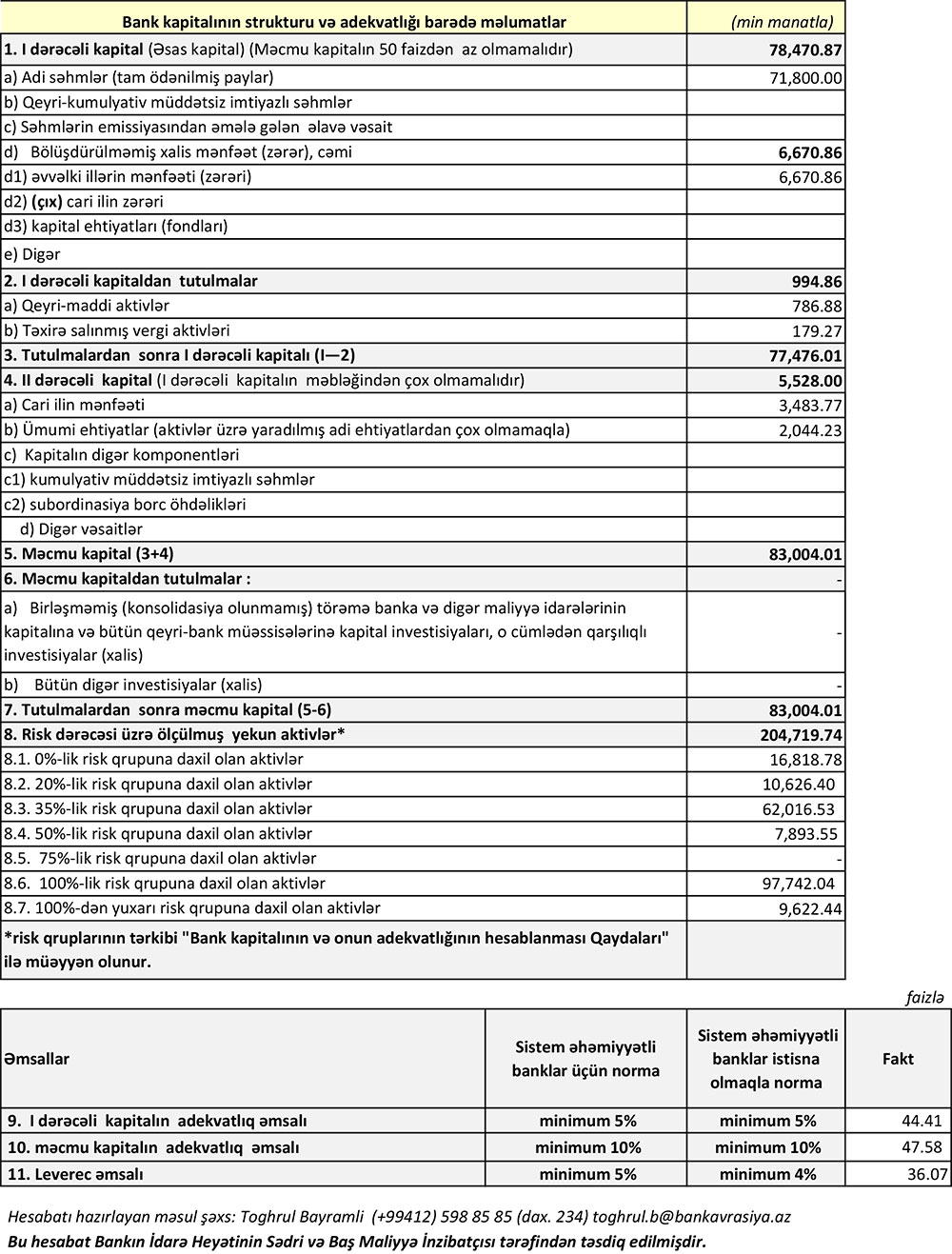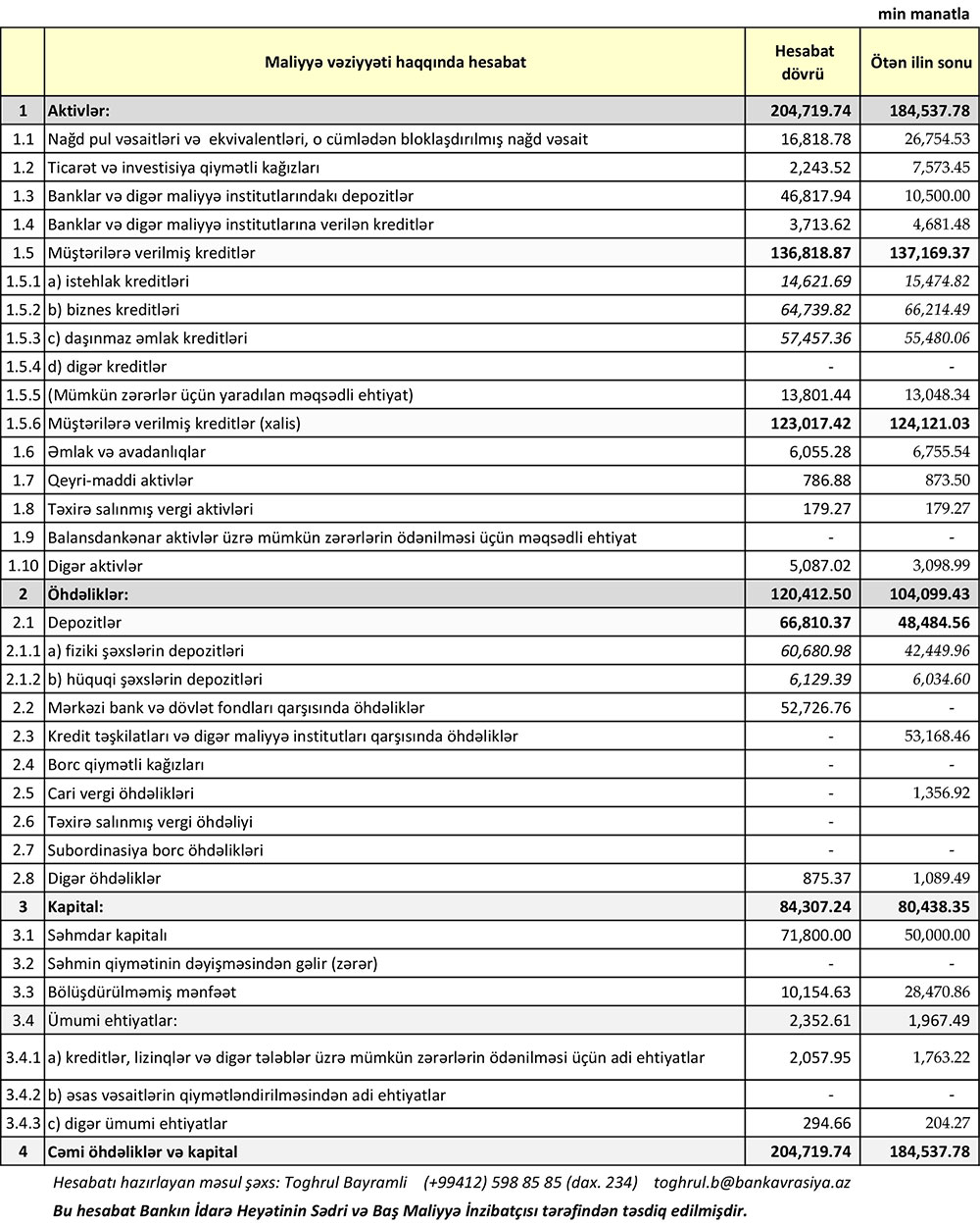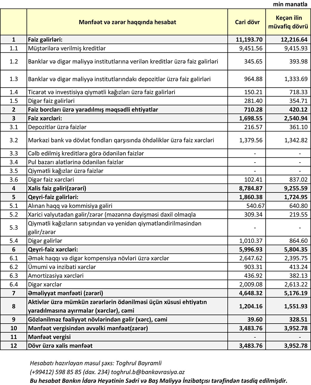 5,176"Bank Avrasiya" ASC 2024-cü ilin 9 ayını (yanvar-sentyabr) 3 milyon 484 min manat xalis mənfəət ilə başa vurub. Bank ötən ilin eyni dövrünü 3 milyon 953 min manat xalis mənfəət ilə bağlamışdı. Beləkilə, "Bank Avrasiya" ASC-nin xalis mənfəəti 2023-cü ilin 9 ayı ilə müqayisədə 2024-cü ilin 9 ayı ərzində 469 min manat və ya 11,9% azalıb.