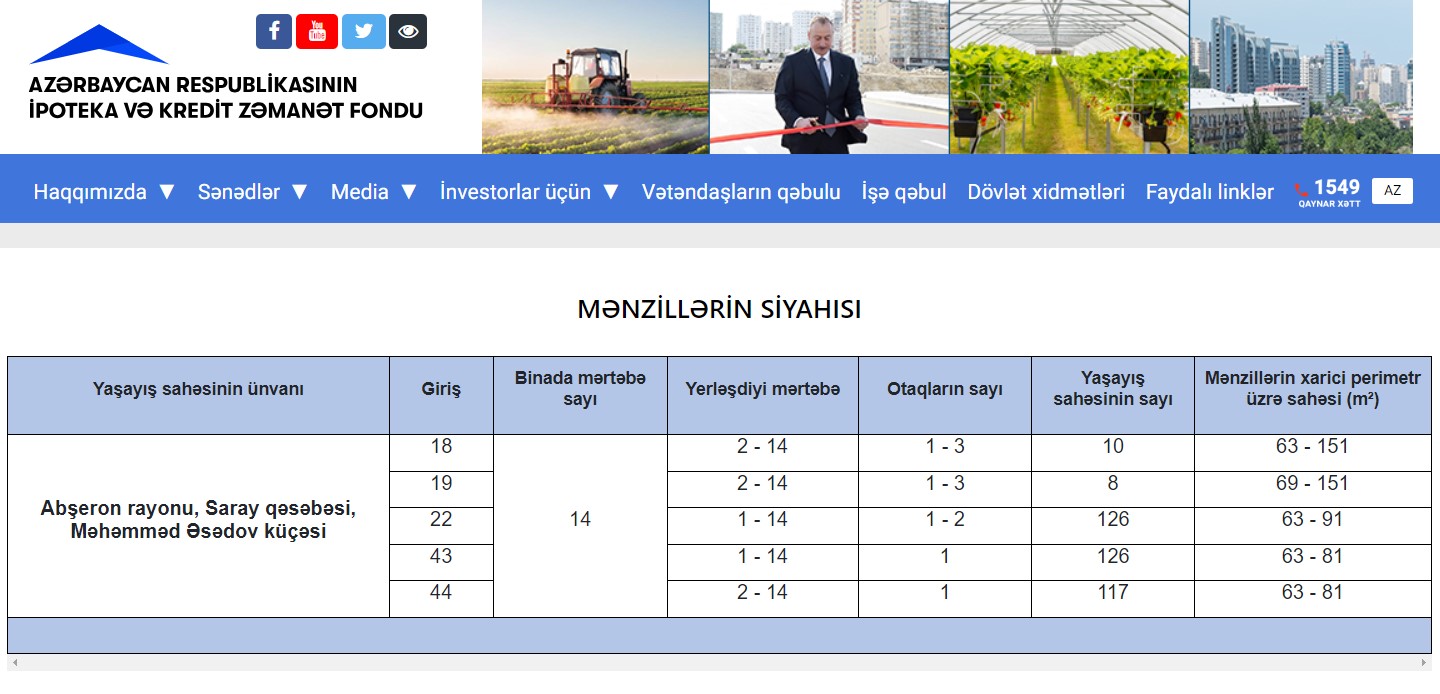 Yeni mənzillər seçim üçün 22 oktyabr 2024-cü ildən etibarən açıq olacaq. Vətəndaşlar təqdim olunan yaşayış sahələrinin siyahısı ilə bu keçid vasitəsilə tanış ola bilərlər.