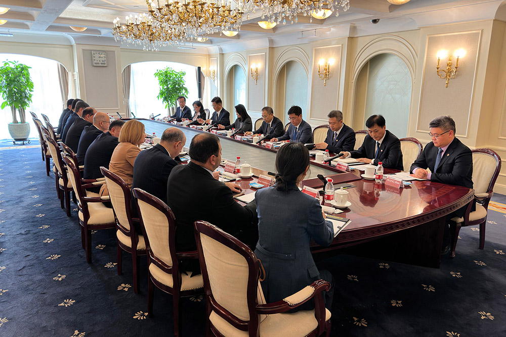 "China Datang Corporation Limited" şirkətinin idarə heyətinin sədri Zou Lei ilə görüşdə isə Azərbaycanın “Bir Kəmər, Bir Yol” təşəbbüsünün fəal iştirakçısı olaraq, enerji və nəqliyyat sahələrində mühüm layihələrdə iştirakından, ikitərəfli əlaqələrin inkişafında enerji əməkdaşlığının vacib rolundan və ölkəmizin etibarlı enerji təchizatçısı missiyasının “yaşıl enerji” ilə genişləndirilməsində Çin şirkətləri ilə tərəfdaşlığın əhəmiyyətindən bəhs edilib. Bildirilib ki, Azərbaycan Avropaya “yaşıl enerji”nin ixracı üçün Xəzər dənizindən keçən “yaşıl enerji dəhliz”ləri təşəbbüsləri ilə çıxış edir və bu istiqamətdə Avropa ölkələri, Türkiyə, Qazaxıstan və Özbəkistan ilə əməkdaşlıq edir. Çin isə bu layihələrdə investor, texnologiya təminatçısı kimi fəal rol oynaya bilər. O da qeyd olunub ki, iki ölkə arasında strateji tərəfdaşlığa dair Bəyannamə hər iki tərəfin qlobal iqlim dəyişikliyi problemlərinin həllində enerji əməkdaşlığını gücləndirməsini təşviq edir. “China Datang” şirkətinin yalnız ölkədə deyil, Çin xaricində də karbon izinin idarə edilməsində təcrübəsinin olduğunu deyən şirkət rəsmisi enerji transformasiyasına töhfə verməyə hazır olduqlarını bildirib.