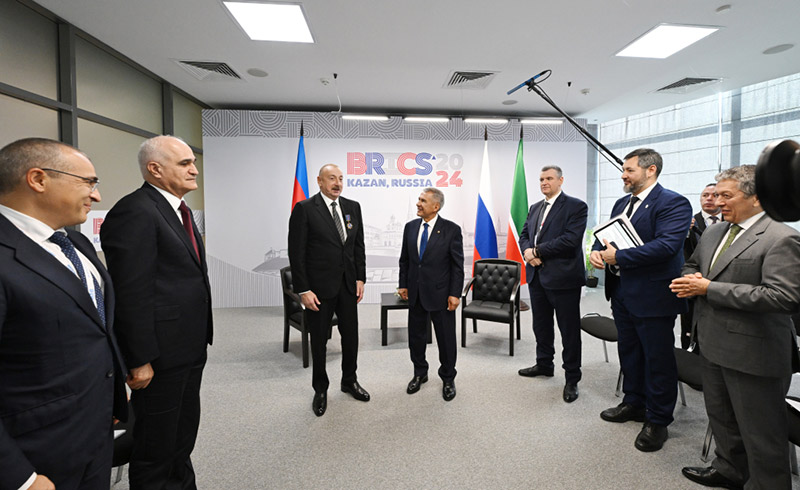 -Rüstəm Nurqaliyeviç, sağ olun. Bir daha qardaş torpaqda olmağıma şadam. İlk növbədə, Sizi və Tatarıstan Respublikasının bütün sakinlərini BRICS sammitinin, həmçinin BRICS+ tədbirinin keçirilməsi münasibətilə təbrik etmək istərdim. Bu, Rusiya Federasiyası rəhbərliyinin respublikaya, şəxsən Sizə, Tatarıstan vətəndaşlarına xüsusi münasibətinin təzahürüdür, həmçinin Tatarıstanın Sizin rəhbərliyinizlə nail olduğu potensialın göstəricisidir. Çünki belə bir irimiqyaslı sammitin keçirilməsi, əlbəttə ki, tədbirlərin, dövlət başçılarının ikitərəfli görüşlərinin təşkili üçün resursların, infrastrukturun, o cümlədən mehmanxana şəbəkəsinin olmasını tələb edir. Ona görə də əvvəlcədən səmimi təbriklərimi çatdırıram. Əminəm ki, sammit ən yüksək səviyyədə keçiriləcək.