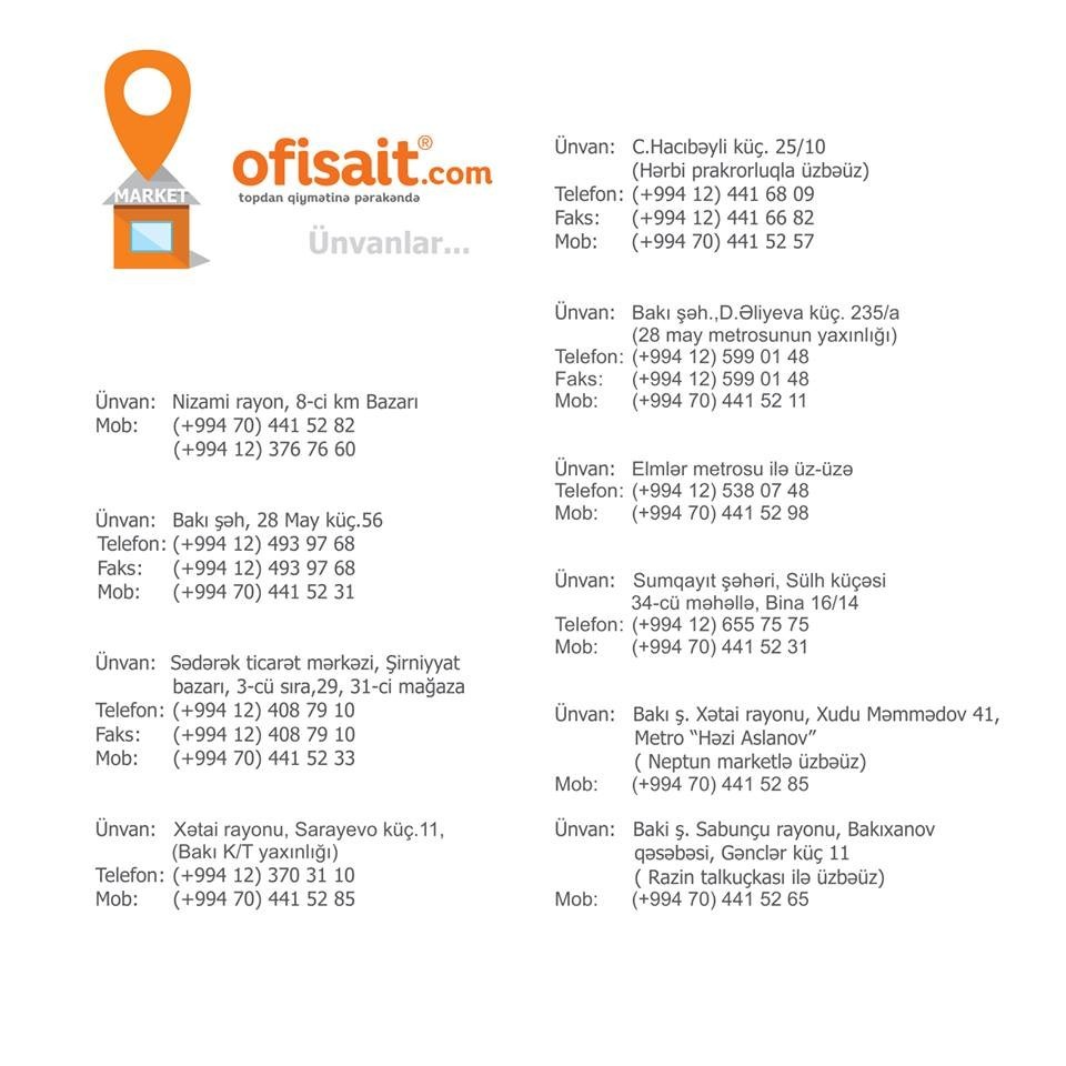 Artıq "Ofisait" mağazaları Bakının bir çox nöqtəsində fəaliyyət göstərdiyindən küçə ticarətçilərindən keyfiyyətsiz məktəb ləvazimatları alamağa ehtiyac yoxdur. Həm pulunuza, həm də vaxtınıza qənaət edərək məktəbli ləvazimatlarını topdansatış qiymətlərinə pərakəndə əldə edə bilərsiniz.
