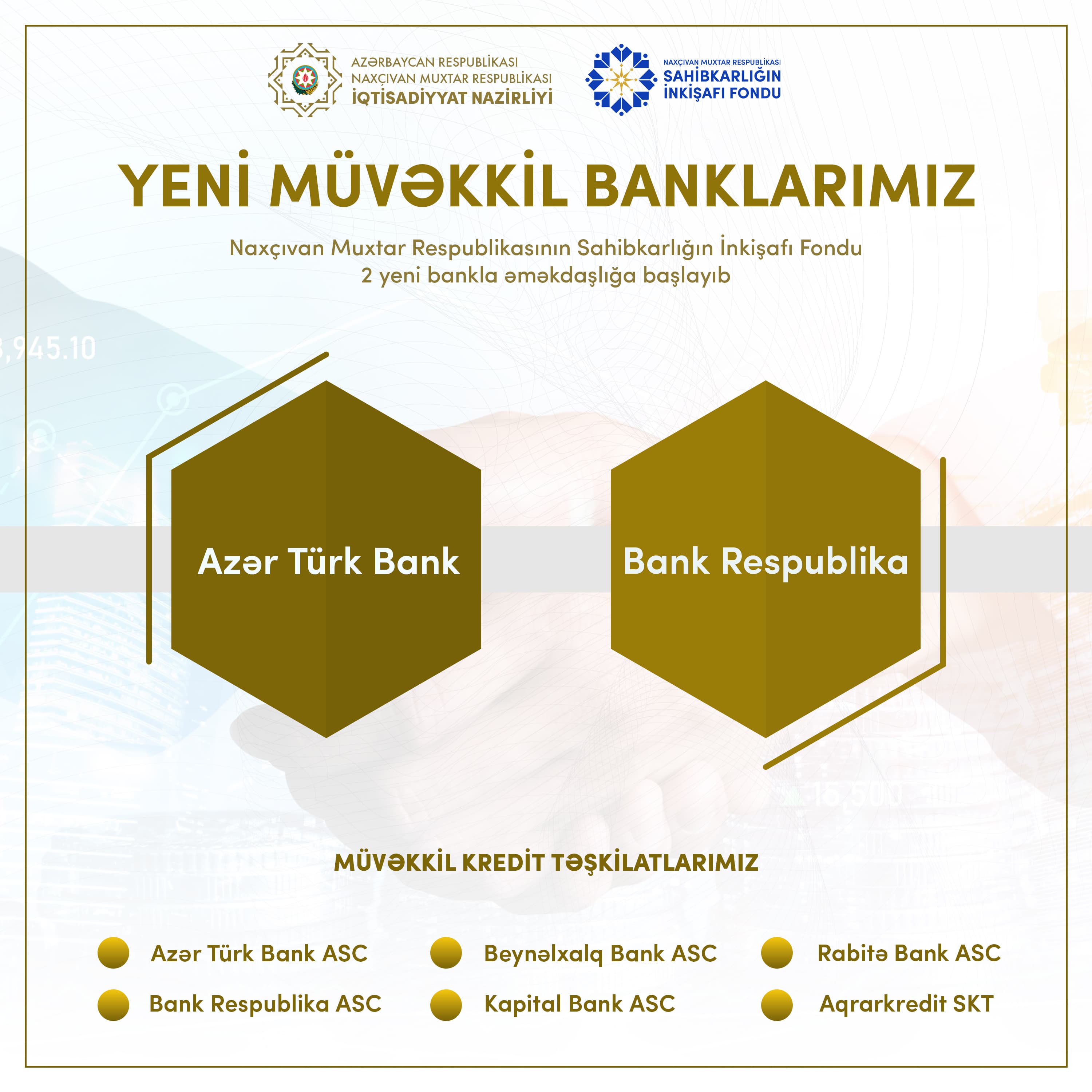 Müvəkkil bankların siyahısına Azər Türk Bank ASC və Bank Respublika ASC əlavə olunub, onların sayı 3-dən 5-ə çatıb.