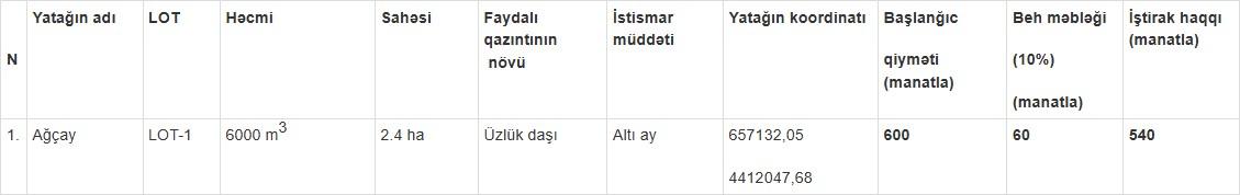 6 faydalı qazıntı yatağı hərraca çıxarılacaq