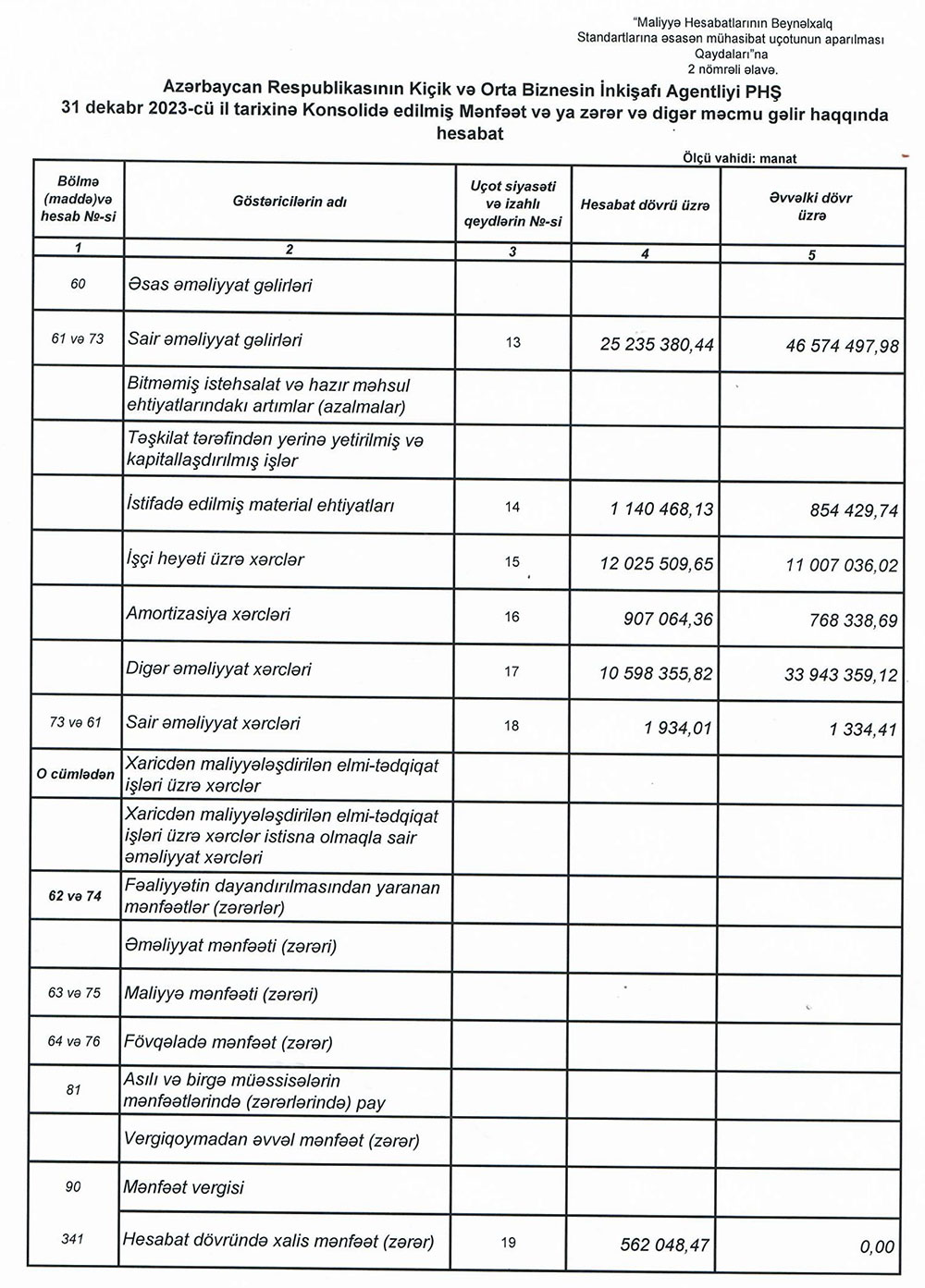 Ötən il KOBİA-nın digər əməliyyat xərclərinin 3 dəfədən çox azalması hesabına gəlirləri xərclərni üstələyib və ili xalis mənfəət ilə bağlayıb.