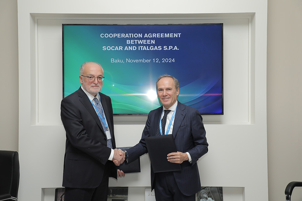 Tərəflər qaz sızmasının aşkarlanması vasitəsilə infrastrukturun dekarbonizasiyası, həmçinin mövcud çevik metodologiya vasitəsilə prosesin rəqəmsallaşdırılması istiqamətlərində əməkdaşlıq edəcəklər.12 noyabr 2024-cü il tarixində COP29 çərçivəsində Azərbaycan Respublikası Dövlət Neft Şirkəti (SOCAR) ilə İtaliyanın “İtalgas” şirkəti arasında əməkdaşlığa dair Saziş imzalanıb.