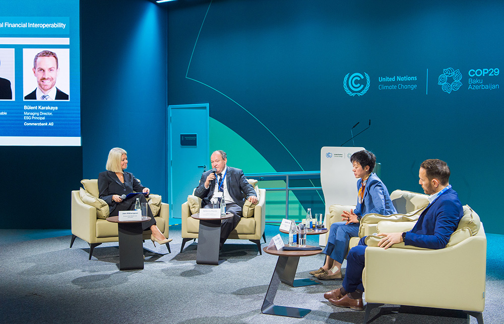 2. “Qlobal maliyyə qarşılıqlı fəaliyyət vasitəsilə iqlim maliyyəsinin genişləndirilməsi” – bu sessiyada “Euronews”un Yaxın Şərq üzrə Büro rəhbəri Ceyn Vizerspun, Avropa İnvestisiya Bankının vitse-prezidenti Ambroz Fayol, “J.P.Morgan” şirkətinin dayanıqlı investisiya üzrə baş strateqi Cenifer Vu, “Commerzbank AG”nin icraçı direktoru və ESİ üzrə rəhbəri Bülent Karakaya qlobal maliyyə sahəsində qarşılıqlı fəaliyyətinin gücləndirilməsi, eləcə də MDB-lər və daha geniş maliyyə sistemi arasında təkmilləşdirilmiş koordinasiyaya diqqət yetirməklə tənzimləyici çərçivələrin və təcrübələrin daha yaxşı uyğunlaşdırılmasının əhəmiyyətindən danışıb.