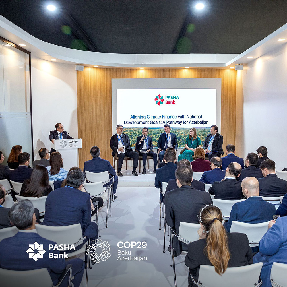 14 noyabrda COP29 Sədrliyinin idarəçiliyi altında Mavi Zonada “PAŞA Bank”ın təşkilatçılığı ilə “İqlim maliyyəsinin milli inkişaf hədəfləri ilə uyğunlaşdırılması: Azərbaycanın yolu” adlı panel təşkil edib.