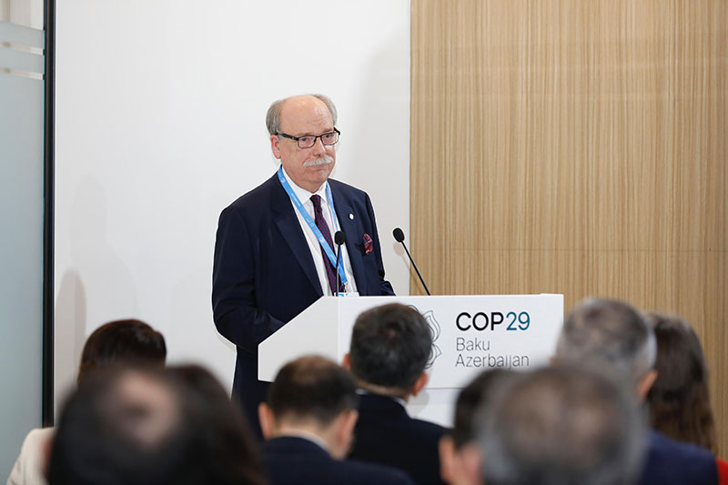 ADY sədri Rövşən Rüstəmov tədbirdə “Azərbaycanın regional və qlobal iqlim məqsədlərinə nail olunmasında Azərbaycanın rolu: Ölkənin nəqliyyat strategiyasında dəmir yollarının rolu” mövzusunda çıxış edərək Azərbaycan Dəmir Yollarının qlobal iqlim çağırışlarına uyğun olaraq 2023-cü ildə BMT-nin Qlobal Sazişinə üzv olması, beynəlxalq GRI və SASB standartları əsasında ADY-də müvafiq diaqnostikanın aparılması və bu diaqnostikanın nəticəsi olaraq ilk dəfə “Dayanıqlılıq hesabatı”nın hazırlanaraq ictimaiyyətə təqdim olunması barədə məlumat verib.