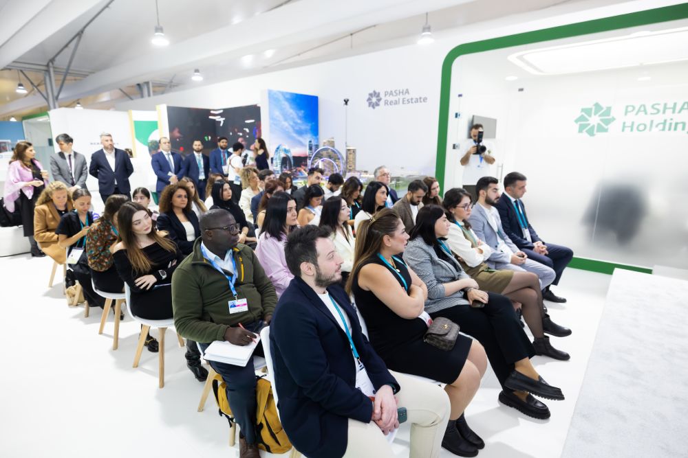 Holdinq “Yaşıl” zonada xüsusi stend təşkil edib və “PAŞA Bank”, “Kapital Bank”, “PAŞA Sığorta”, “PAŞA Həyat”, “AgroDairy” və “PASHA Real Estate” kimi şirkətləri tərəfindən iqlim maliyyələşdirilməsi, dayanıqlı kənd təsərrüfatı və “yaşıl” iqtisadiyyata inklüziv keçidi təşviq etməkdə özəl sektorun liderlik rolu kimi vacib mövzulara həsr olunan bir sıra sessiyalar keçirilib.