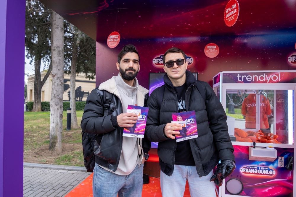 Kampaniya müddətində şirkət Bakı bulvarında, Azərbaycan Dövlət Kukla teatrının yaxınlığında - piyada keçidinin önündəki stendində müştərilərini qarşılayacaq və onlara əlavə endirim fürsəti qazandırmağa davam edəcək. Belə ki, Trendyol stendinin ziyarətçiləri təşkil olunmuş yarışlarda iştirak edərək 5000, 2000, 750, 500, 200 və 100 TL məbləğində endirim kuponları əldə edə biləcəklər.