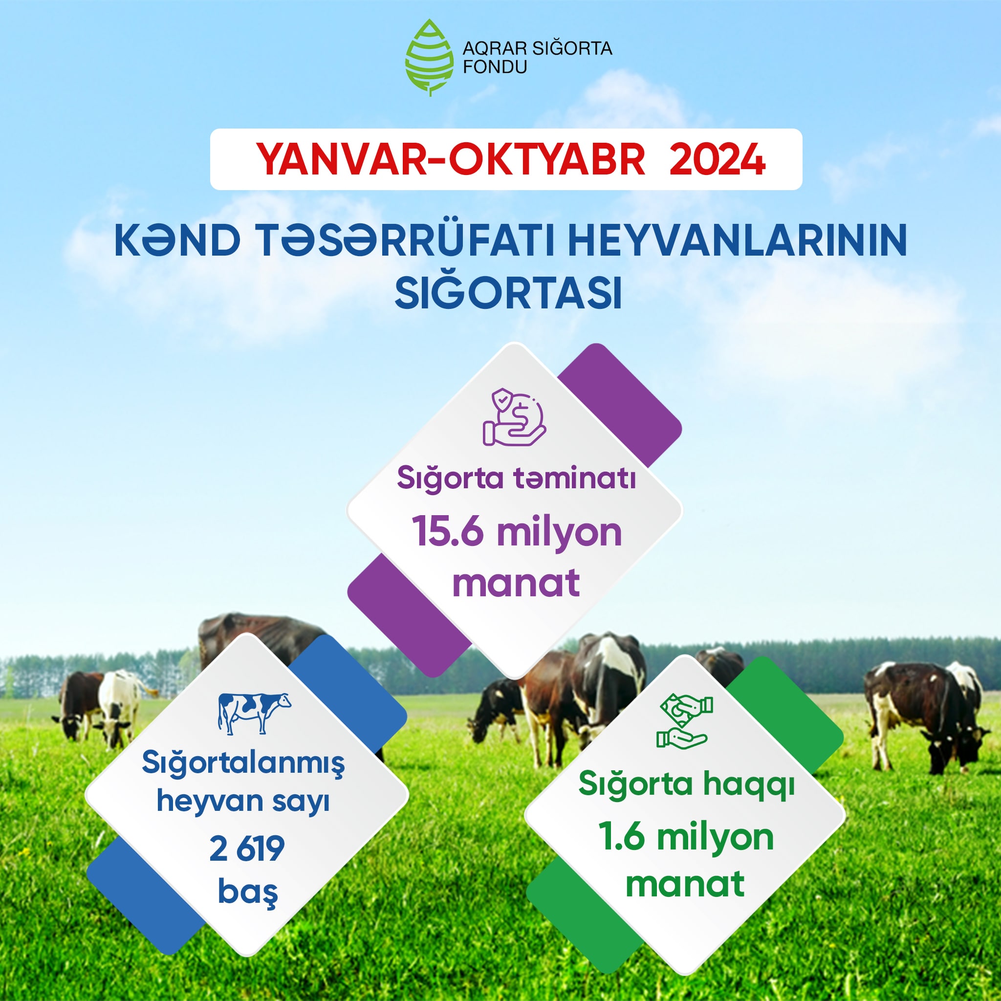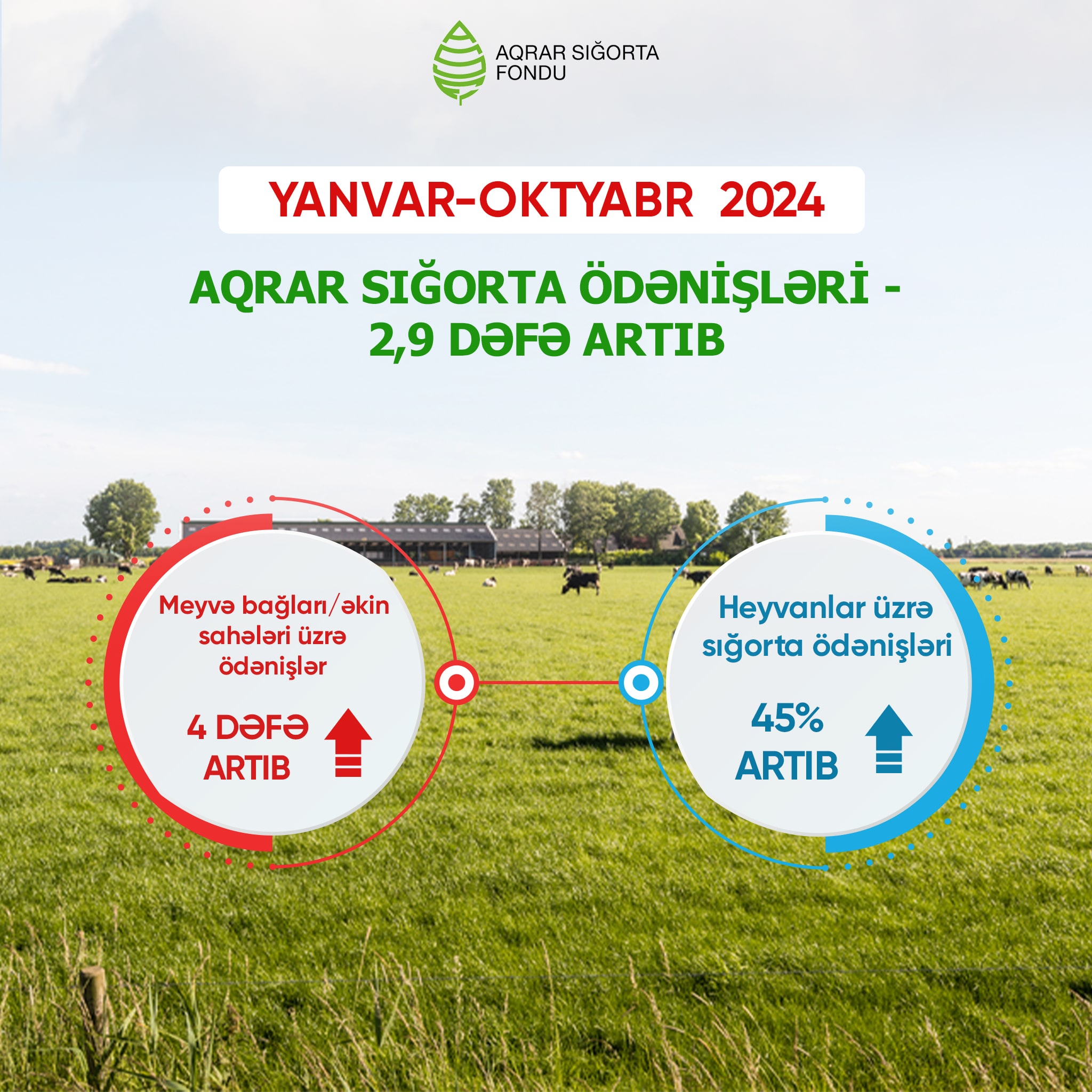 2024-cü ilin ilk 10 ayında ölkə üzrə 406 500 hektar əkin sahəsi sığortalanıb və 10 milyon 841 min manat sığorta haqqı toplanıb. Ən çox sığortalanan bitkilər nar, fındıq bağları, çəltik, şəkər çuğunduru, buğda, arpa, qoarğıdalı, pambıq sahələridir.
