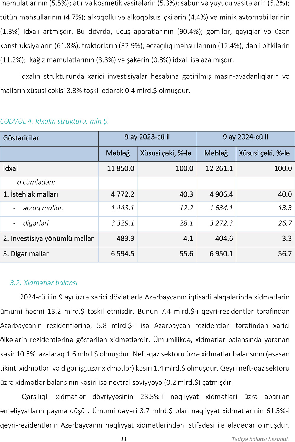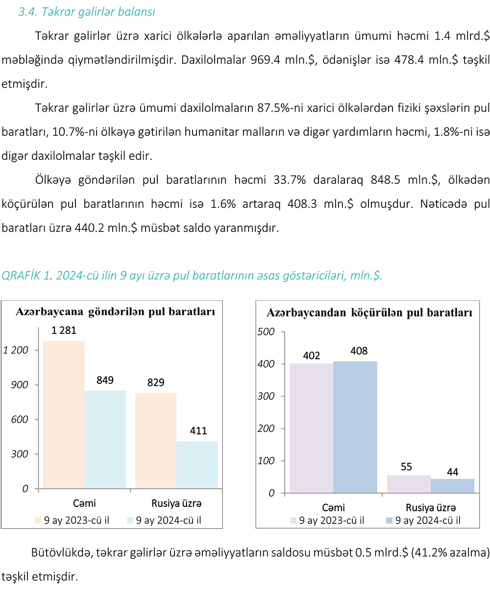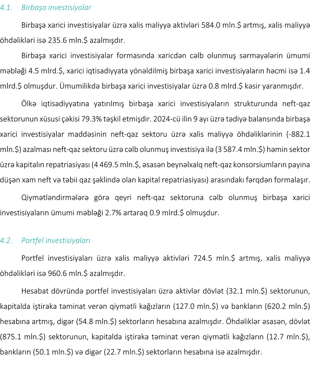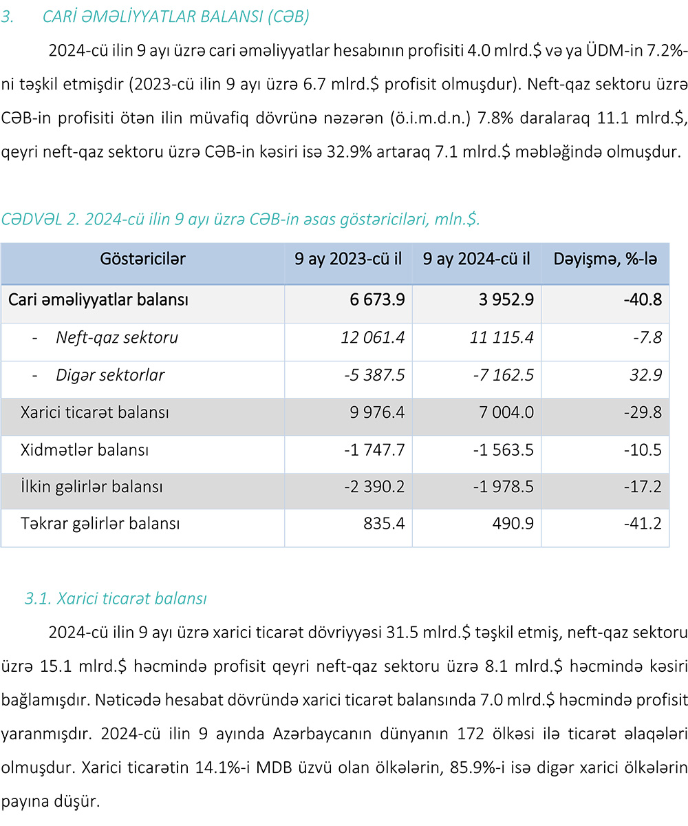 2024-cü ilin 9 ayı üzrə (yanvar-sentyabr) tədiyyə balansı