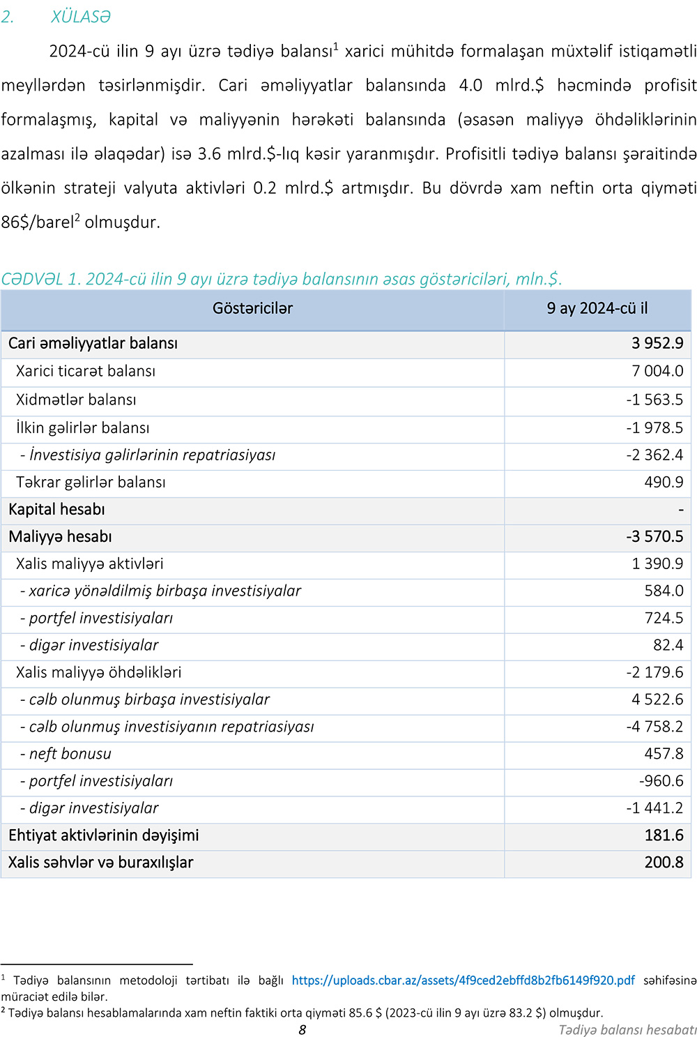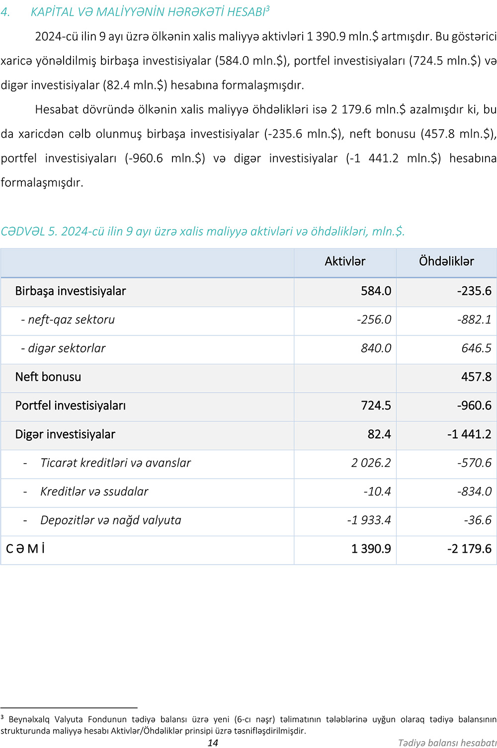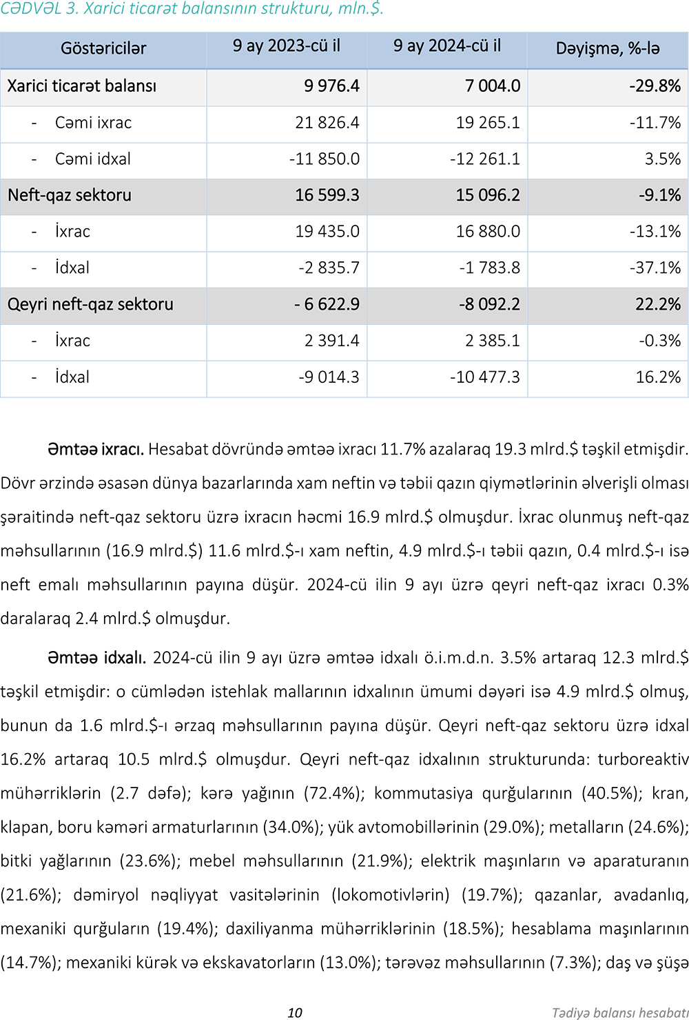 2024-cü ilin 9 ayı üzrə (yanvar-sentyabr) tədiyyə balansı