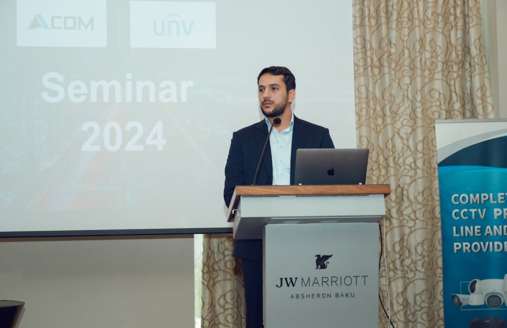 Seminarın əsas hissəsi Acom şirkətinin kommersiya direktoru Fərid Quliyevin çıxışı ilə başlayıb. O, UNV brendinə aid yeni məhsullar – IP kameralar, NVR-lər və digər innovativ məhsullar barədə təqdimat edib.