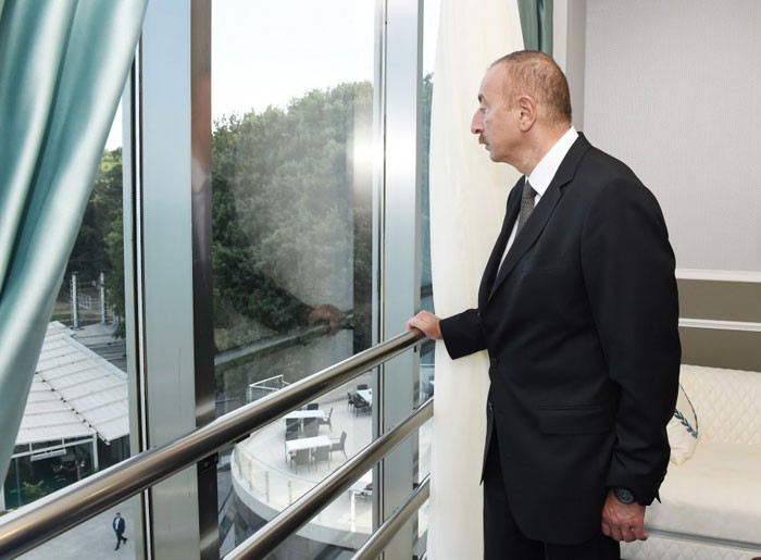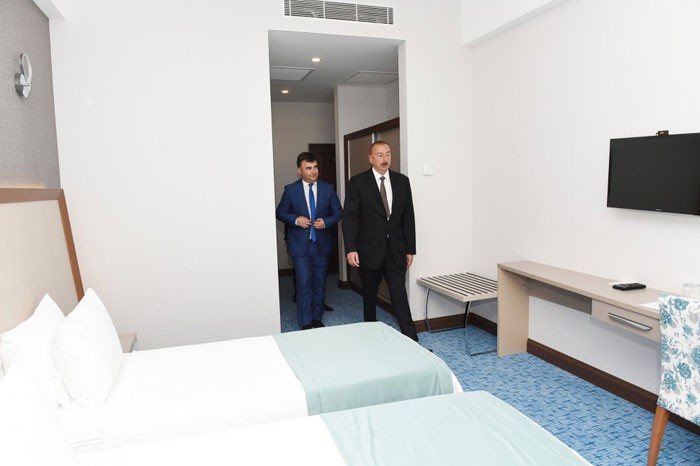 Dövlətimizin başçısı oteldəki nömrələrdə yaradılan şəraitlə maraqlandı. Məlumat verildi ki, müxtəlif kateqoriyalı bu nömrələr ən müasir tələblər səviyyəsindədir və yüksək dizaynı ilə seçilir. Oteldə uşaqların da istirahətinin təşkili üçün lazımi şərait yaradılıb. Burada balacalar üçün müxtəlif əyləncə və idman sahələri qurulub. Oteldə qonaqların vaxtlarını səmərəli keçirmələri üçün xüsusi idman zalları da var. Burada qonaqlara təqdim olunan xidmətlər çoxçeşidliliyi ilə fərqlənir. Müxtəlif trenajorlar, müasir idman avadanlığı və hovuzlar qonaqların istirahət imkanlarını daha da artırır.