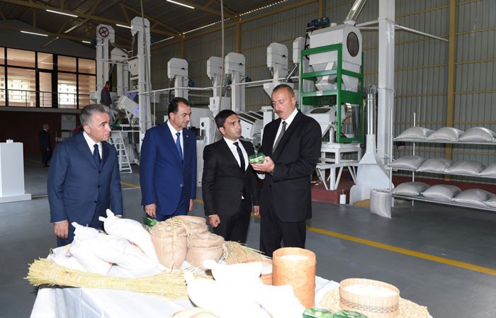 Azərbaycan Respublikasının Prezidenti İlham Əliyev sentyabrın 2-də Lənkəranda “Cənub-Aqro” MMC-nin çəltik sahələrinə baxıb və çəltik zavodunun açılışını edib.