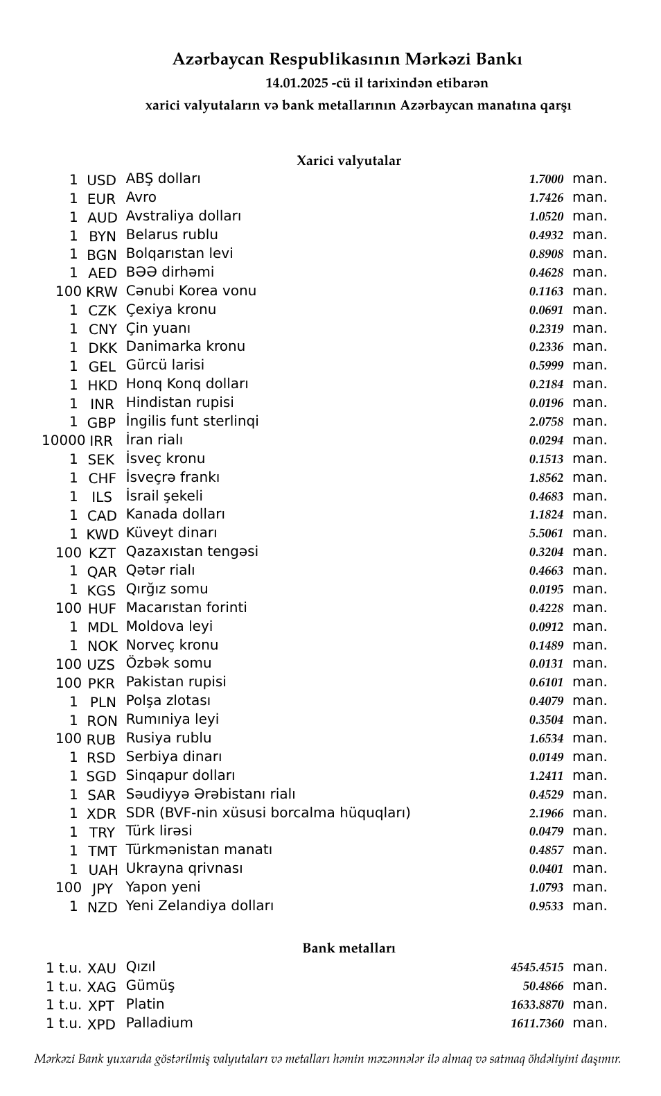 Dolların bazar ertəsi üçün rəsmi məzənnəsi müəyyən olunub