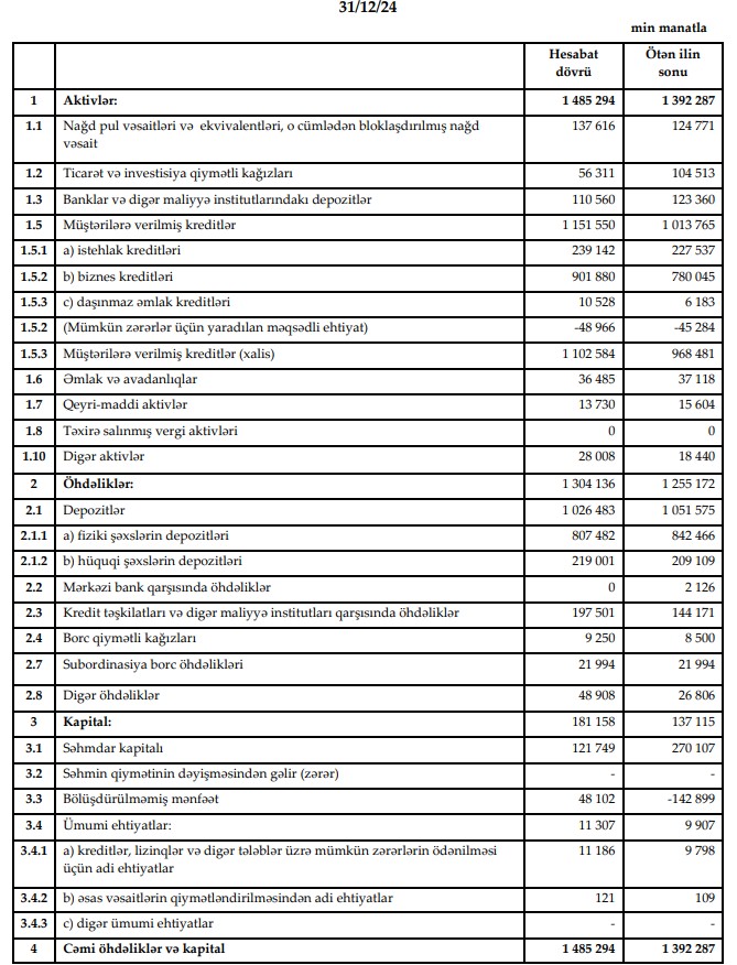 Qeyd edək ki, "AccessBank" 2024-cü ili 54 milyon 62 min manat xalis mənfəət ilə başa vurub. Bank 2023-cü ili 39 milyon 838 min manat xalis mənfəət ilə bağalmışdı.