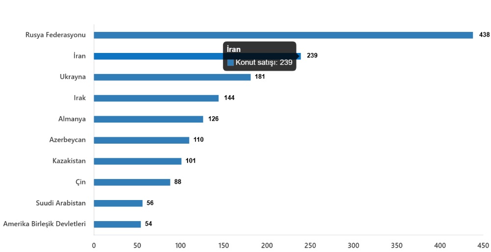 2024-cü ildə Türkiyədə ən çox ev Rusiya (4 min 867), İran (2 min 166 ) və Ukrayna (1631) vətəndaşlarına edilib.