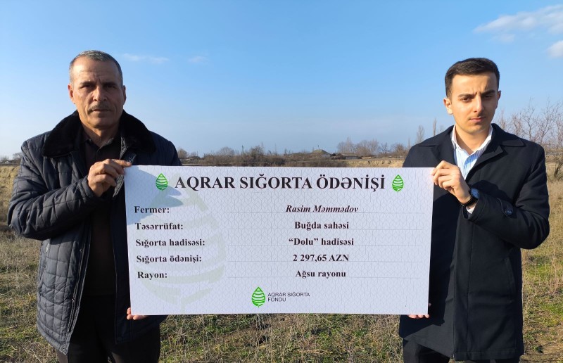 Ağsu rayonunun Kəndoba kəndində fermer Bəhruz Nəbiyevə arpa əkini sahəsinə dolu yağıntısı nəticəsində dəymiş zərərə görə 24 min 41 manat sığorta ödənişi edilib. Eyni zamanda rayonun Abasxanlı kəndində eyni səbəbdən buğda sahəsinə dəymiş zərərə görə fermer Rasim Məmmədov 2 297 manat sığorta ödənilib.