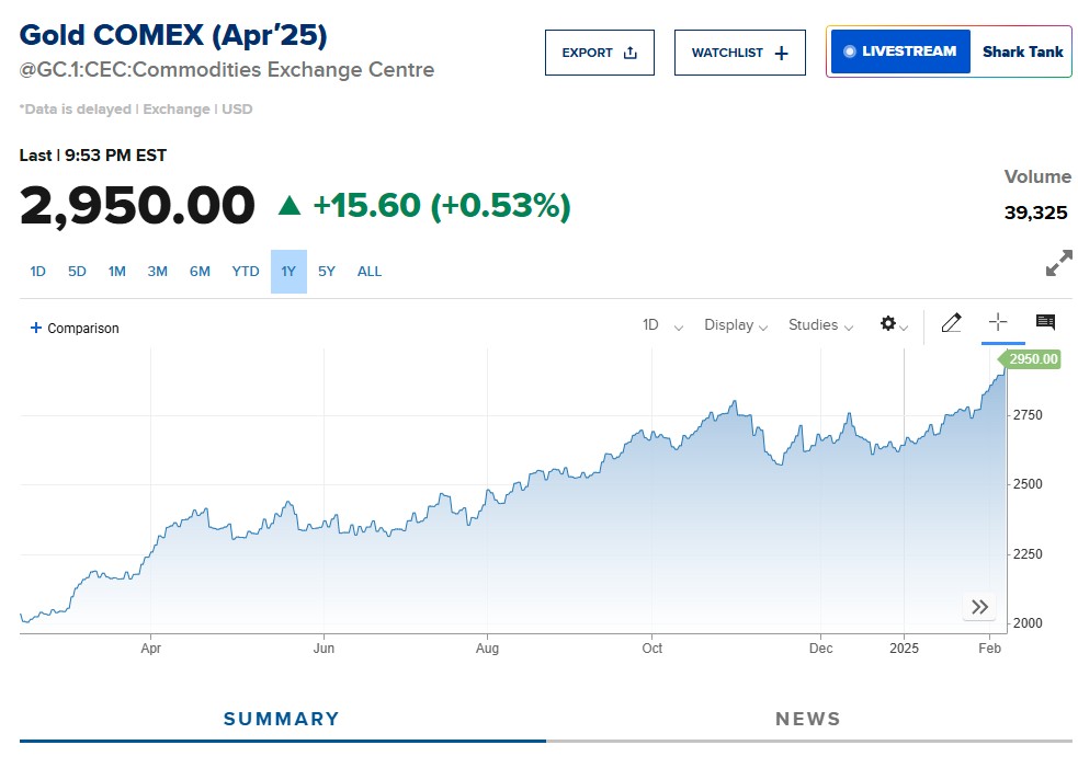 Bazar günü Prezident Trampın ABŞ-a bütün alüminium və polad idxalına 25% ticarət tarifləri tətbiq edəcəyini söylədikdən sonra sarı metal rekord səviyyəyə qalxıb. Həmçinin Tramp, ABŞ-ın idxal rüsumlarının ölkənin digər ticarət tərəfdaşları tərəfindən tətbiq olunanlara uyğun olaraq artacağını nəzərdə tutan qarşılıqlı tariflər planını açıqlayıb.