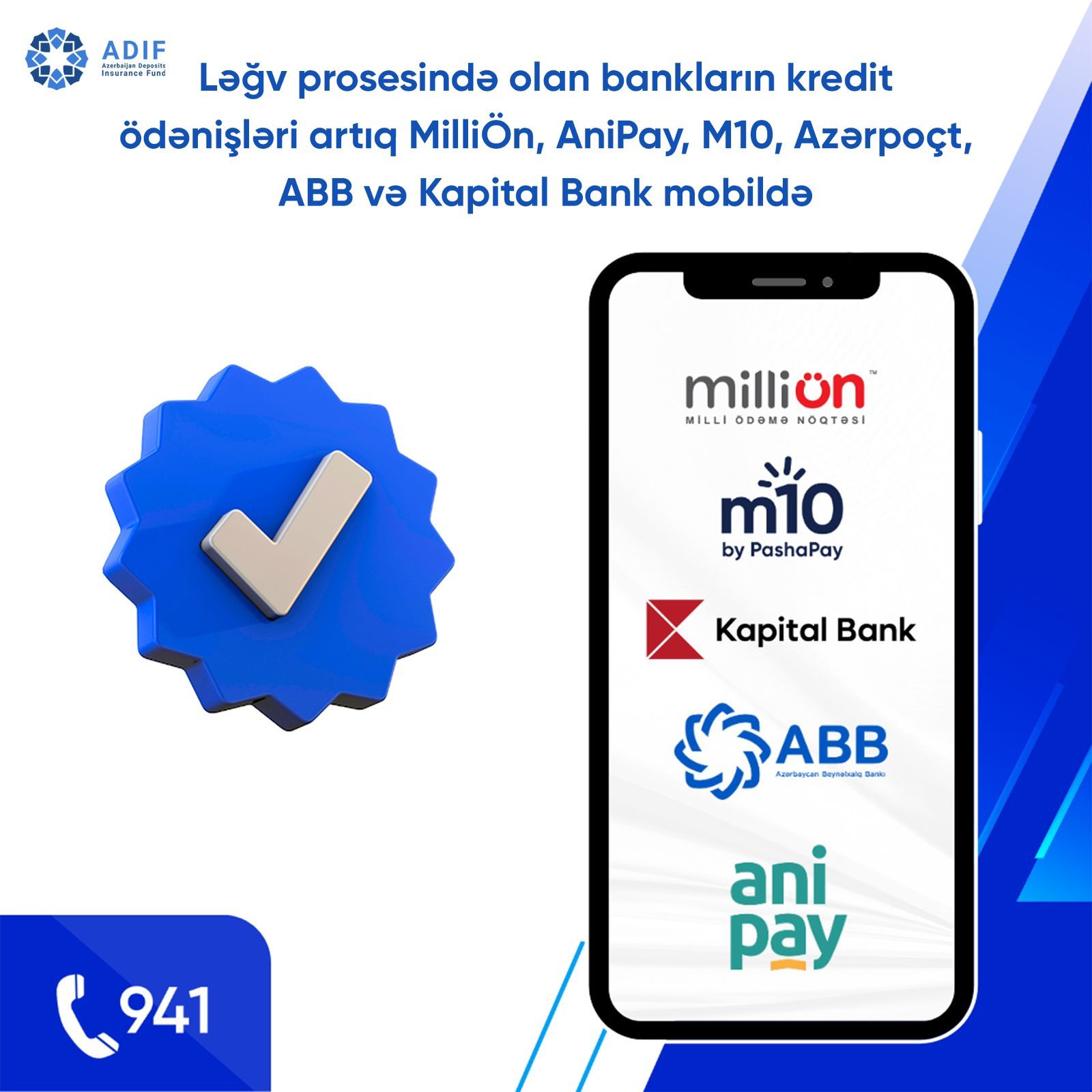 Ləğv prosesində olan bankların kredit ödənişləri artıq MilliÖn, AniPay, M10, Azərpoçt, ABB və Birbank-da