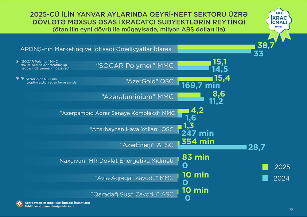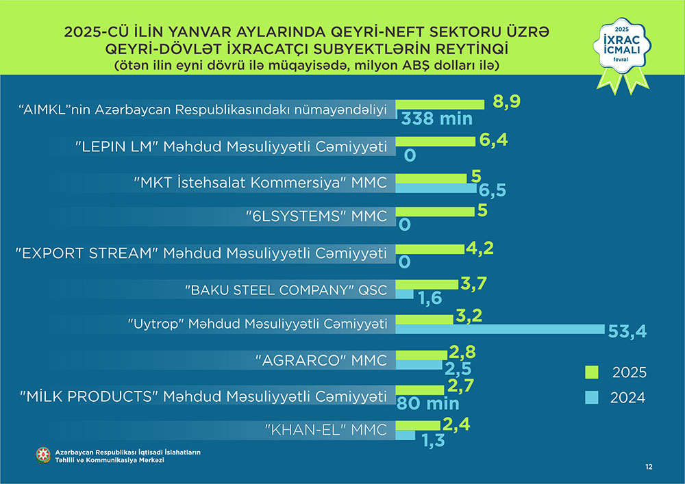 İqtisadi İslahatların Təhlili və Kommunikasiya Mərkəzi (İİTKM) “İxrac icmalı”nın fevral sayını təqdim edib.