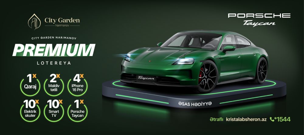 "City Garden Narimanov"dan mənzil alın, hazırda davam edən Premium lotereyaya qoşulub, Porsche Taycan qazanmaq şansını qaçırmayın!