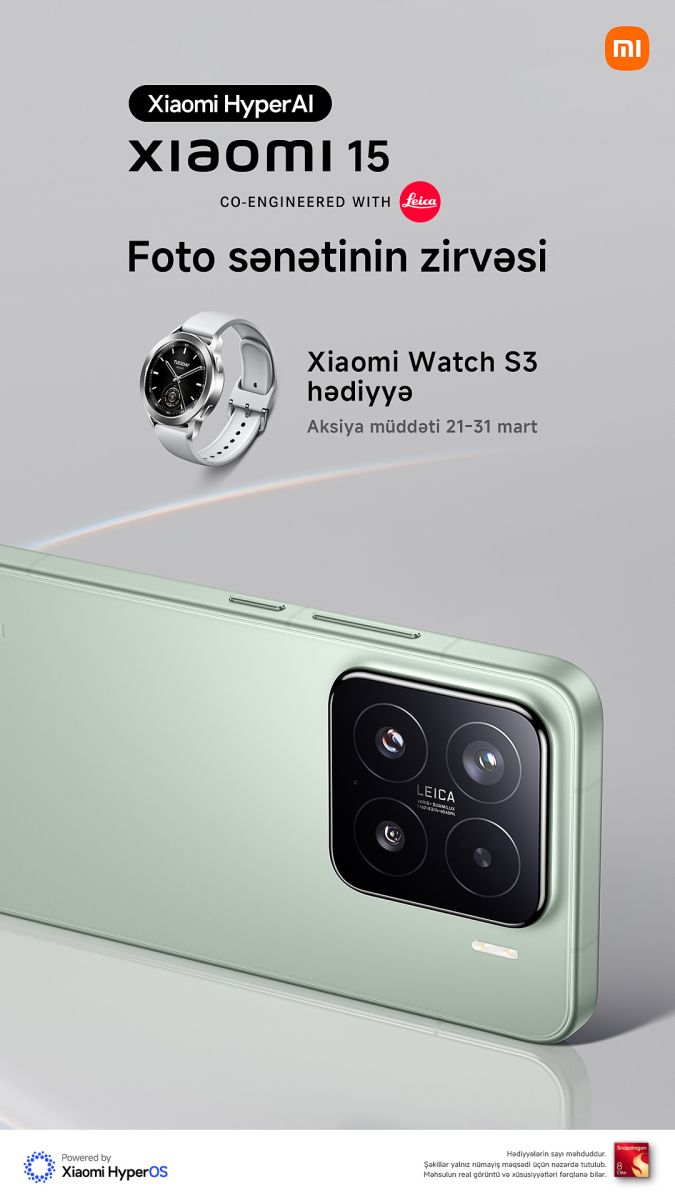 Yalnız martın 21-dən 31-dək! “Xiaomi 15” smartfonu alarkən hədiyyə olaraq dəbli və funksional “Xiaomi Watch S3” smart-saatını əldə edəcəksiniz! Bir komplektdə həm güclü smartfon, həm də smart-saat əldə etmək fürsətini qaçırmayın!
