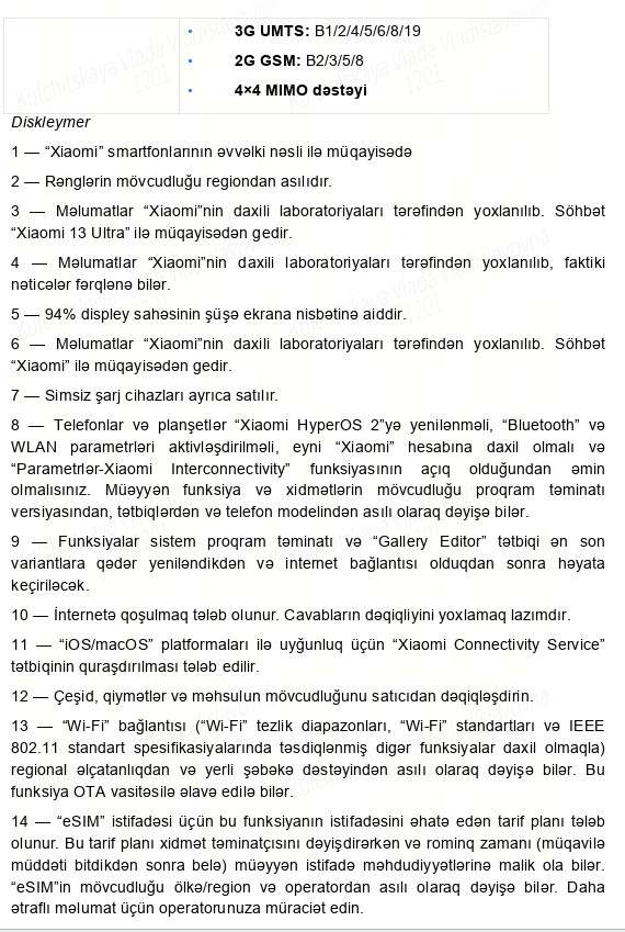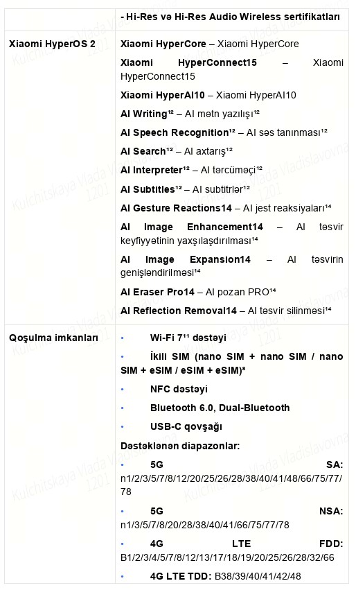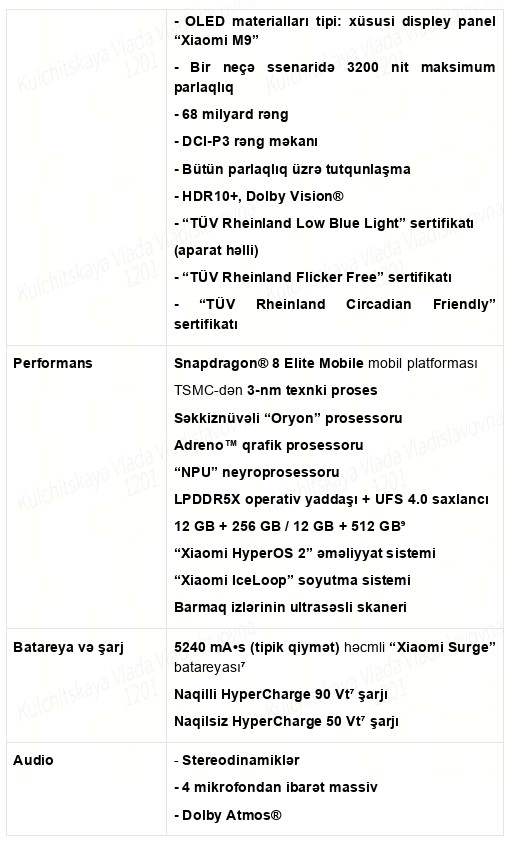 “Xiaomi 15” 12 GB + 512 GB⁸ yaddaş variantı ilə ağ, yaşıl və qara rənglərdə⁷ təklif olunur.