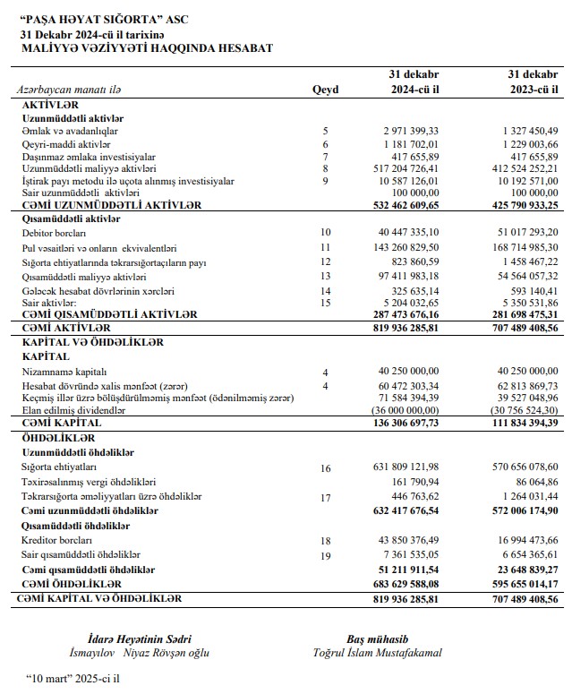 Marja.az Şirkətin 31 Dekabr 2024-cü il tarixinə olan hesabatlarına istinadən xəbər verir ki, “PAŞA Həyat Sığorta”nın ümumi gəlirləri 2023-cü ildə 412 milyon 554 min manat ikən, 2024-cü ildə 578 milyon 717 min manat təşkil edib (166 milyon 163 min manat və ya 40,3% artıb).