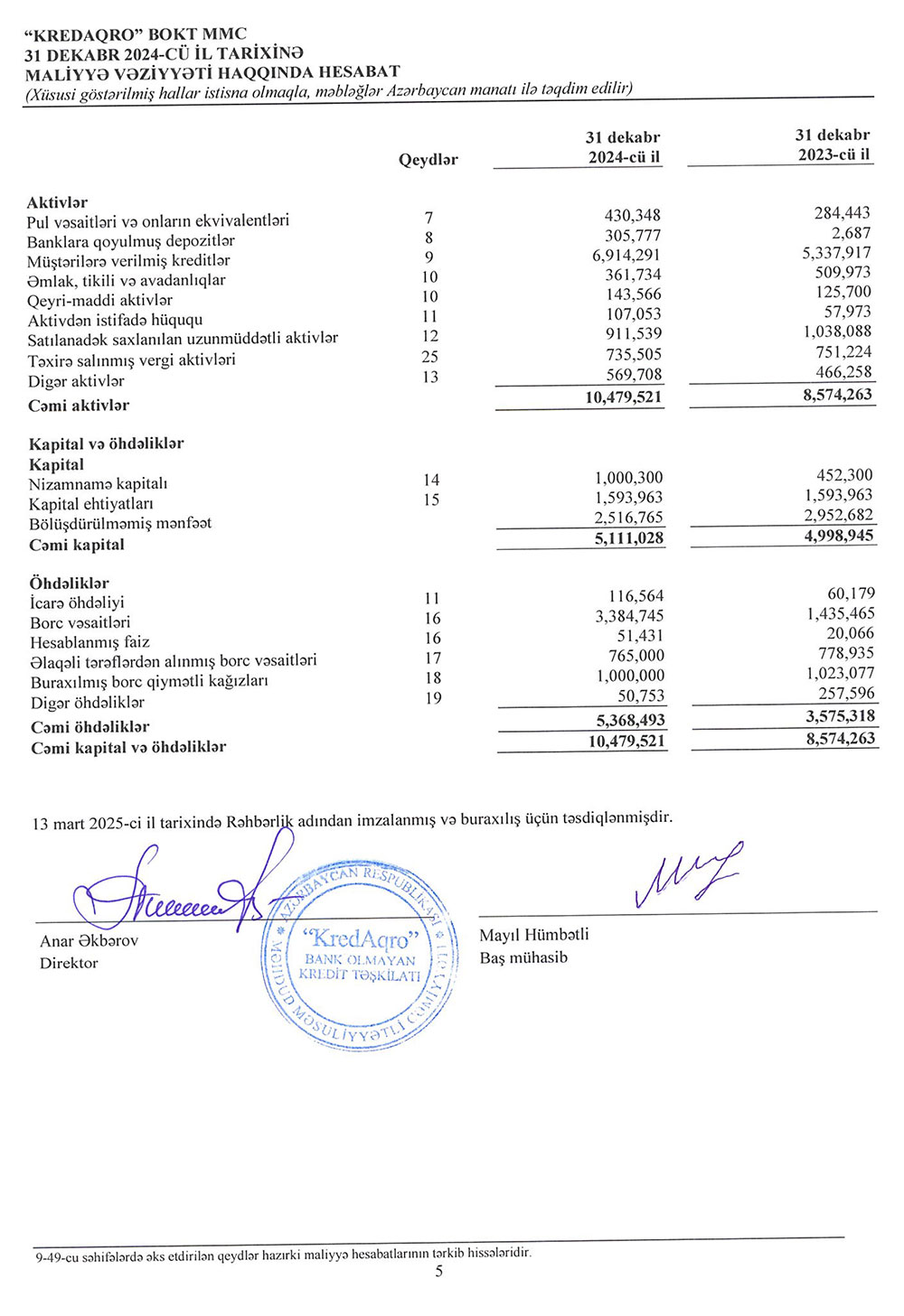 Qeyd olunub ki, 2024-ci ilin yekunlarına görə, “KredAqro” BOKT MMC-nin cəmi aktivləri 10 milyon 479 min 521 manat olmaqla, ötən ilin analoji dövrü ilə müqayisədə 22.22 % artım etmişdir. Təşkilatın xalis kredit portfeli 6 milyon 914 min 221 manat olmuşdur ki, bu da ötən ilki göstərici ilə müqayisədə 29.53 % artım deməkdir.