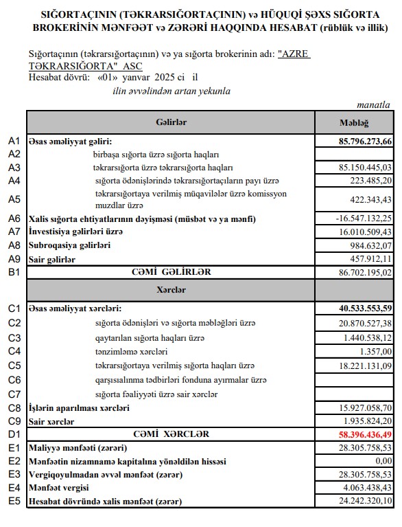 Azərbaycanın təkrarsığorta şirkətinin xalis mənfəəti artıb - 24 MİLYON MANATDAN ÇOX QAZANC