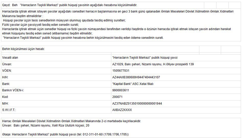 Hərracda iştirak üçün son qeydiyyat tarixi 7 aprel 2025-ci ildir.