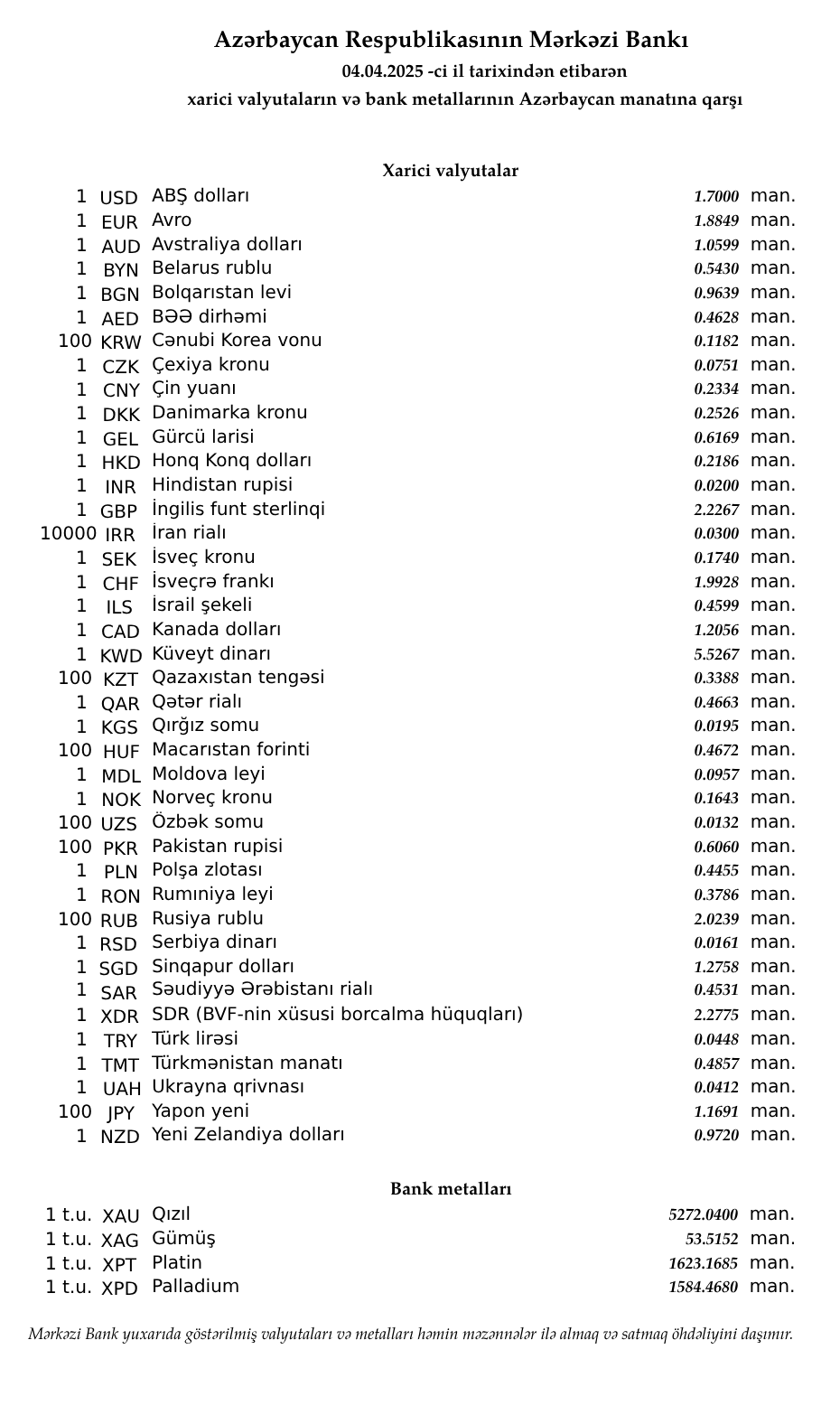 04.04.2025 tarixindən etibarən