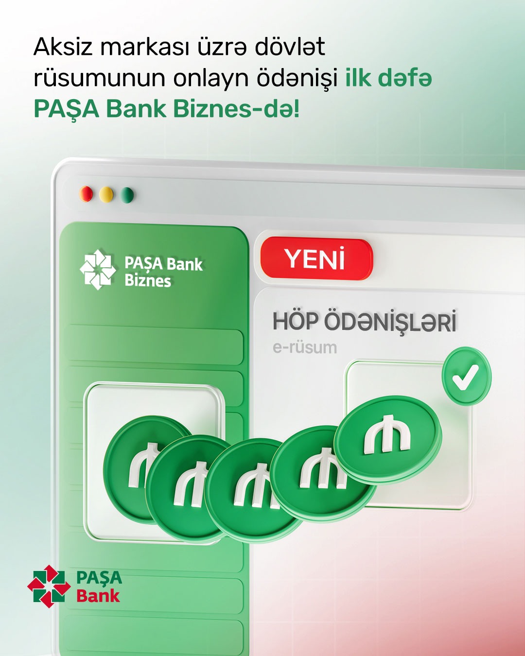 “PAŞA Bank” sadalanan dövlət rüsumlarının onlayn ödənişi xidmətini təqdim edən ilk bank olmaqla, bu addımı ilə hökumətin rəqəmsal idarəetmə təşəbbüslərinə uyğunlaşır və sahibkarlara maliyyə öhdəliklərini daha rahat, sürətli və asan şəkildə yerinə yetirməyə imkan yaradır. Bank, ölkədə real sektorun dayanıqlı inkişafını dəstəkləyən innovativ maliyyə həlləri ilə iqtisadi artıma, rəqabət qabiliyyətinin yüksəldilməsinə və qeyri-neft sektorunun inkişafına töhfə verir.