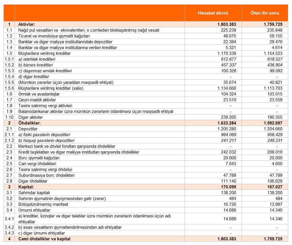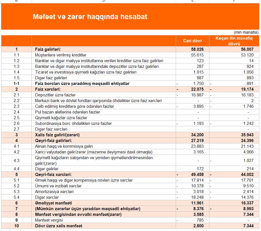 Beləliklə, "Unibank"ın xalis mənfəəti 2025-ci ilin 1-ci rübündə ötən ilin eyni dövrü ilə müqayisədə 4 milyon 544 min manat və ya 61,9% azalıb. Xalis mənfəətin azalması faiz xərclərinin, o cümlədən cəlb edilmiş kreditlərə görə ödənilən faizlərin və digər xərclərin artması ilə əlaqədardır.
