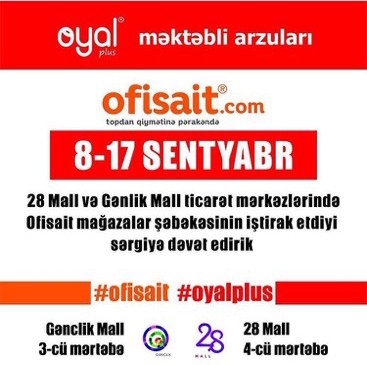 “Ofisait” valideynləri yarmarkaya dəvət edərək, “Oyal” məktəb ləvazimatlarını topdan qiymətlərə pərakəndə almağı təklif edir