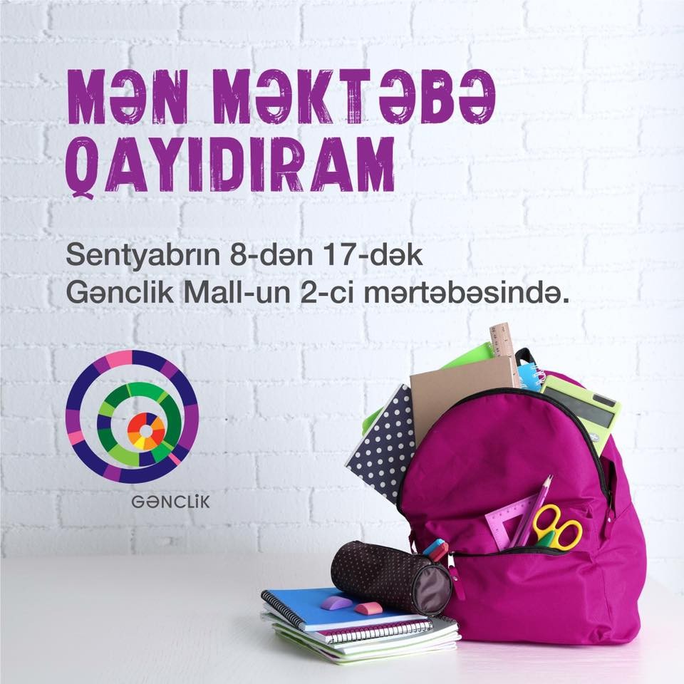 Sentyabrın 8-dən etibarən “28 Mall” və “Ganjlik Mall” ticarət mərkəzlərində “Mən Məktəbə Qayıdıram” yarmarkası açılıb.