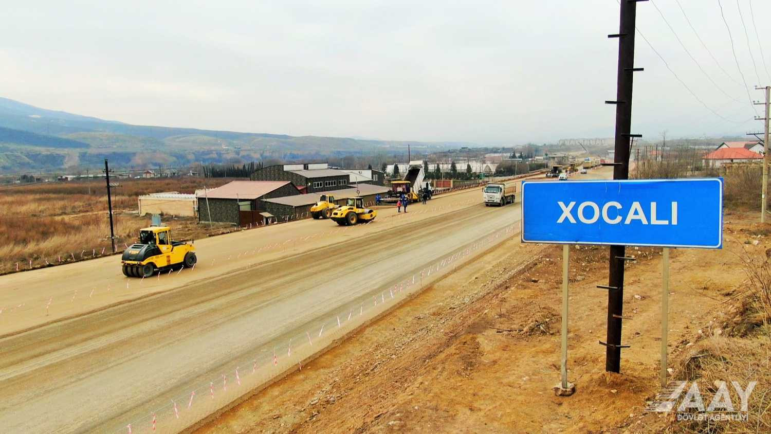 Ağdam-Əsgəran-Xocalı-Xankəndi avtomobil yolunun tikintisi işləri sürətlə davam etdirilir.