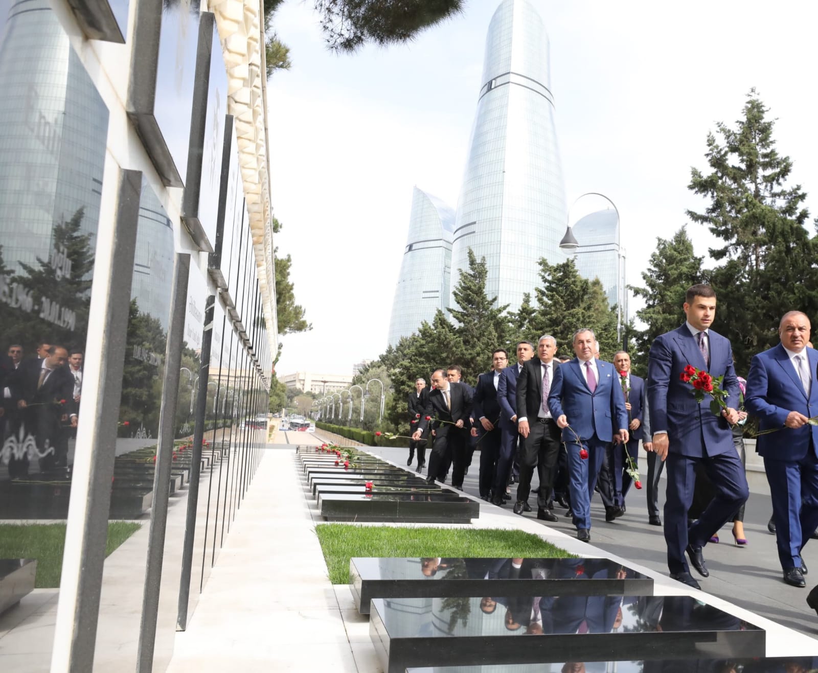 Sonra sahibkarlar Şəhidlər Xiyabanında Azərbaycanın suverenliyi və ərazi bütövlüyü uğrunda canlarından keçmiş qəhrəman Vətən övladlarının xatirəsini yad edib, məzarları önünə güllər düzüb, “Əbədi Məşəl” kompleksinə əklil qoyublar.