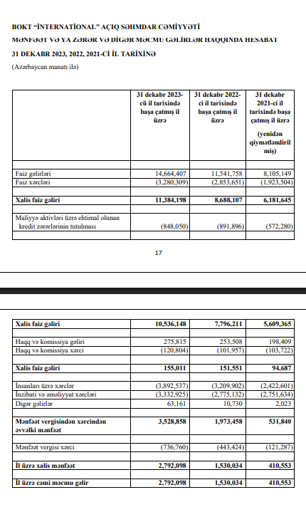 BOKT “İnternational”ın kredit portfeli böyüyüb, xalis mənfəəti kəskin artıb