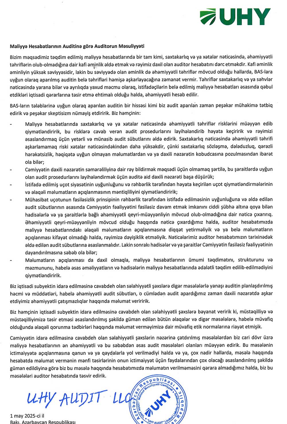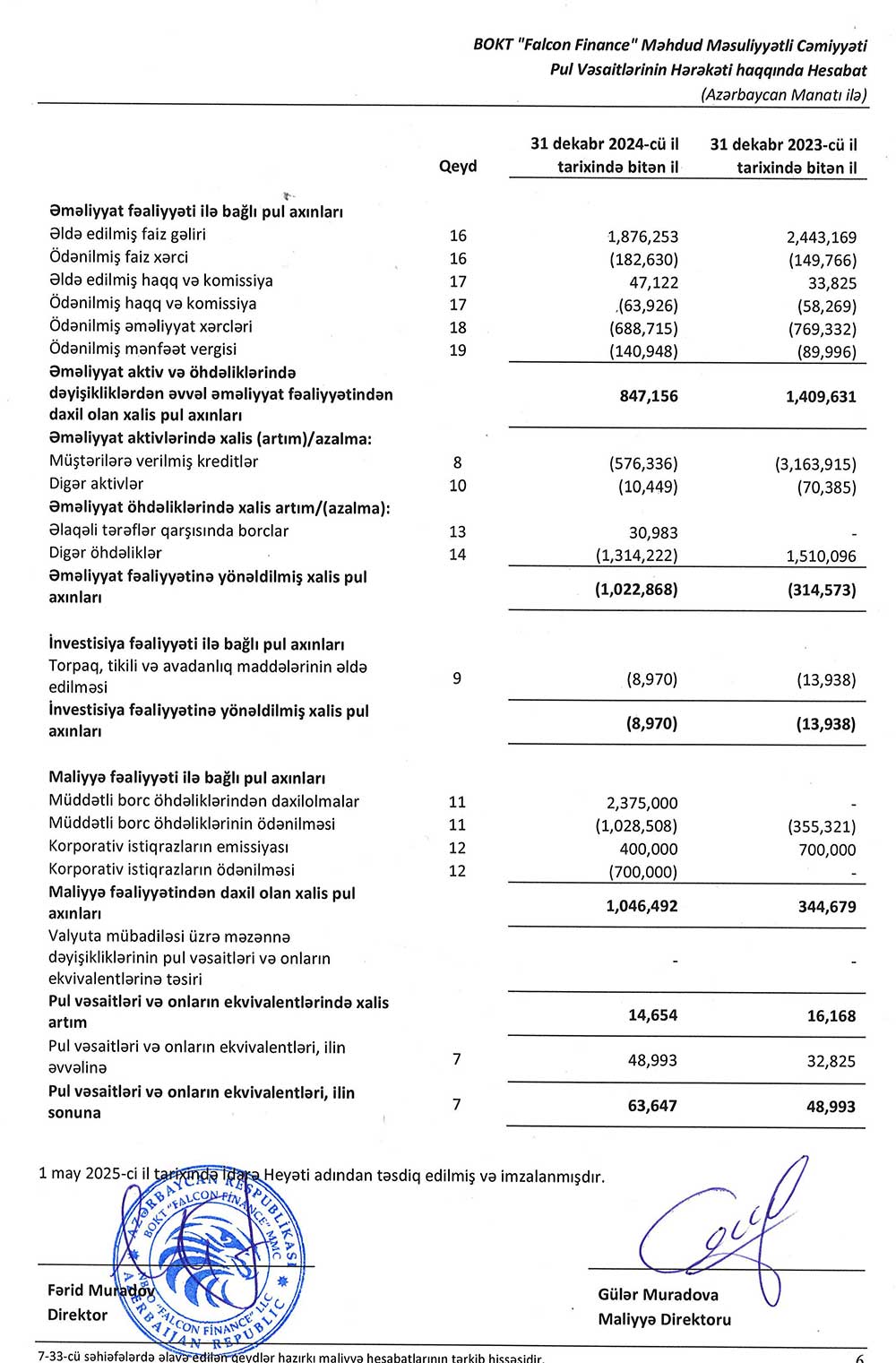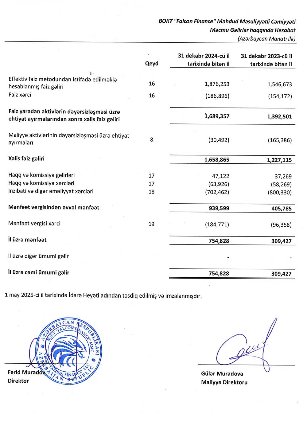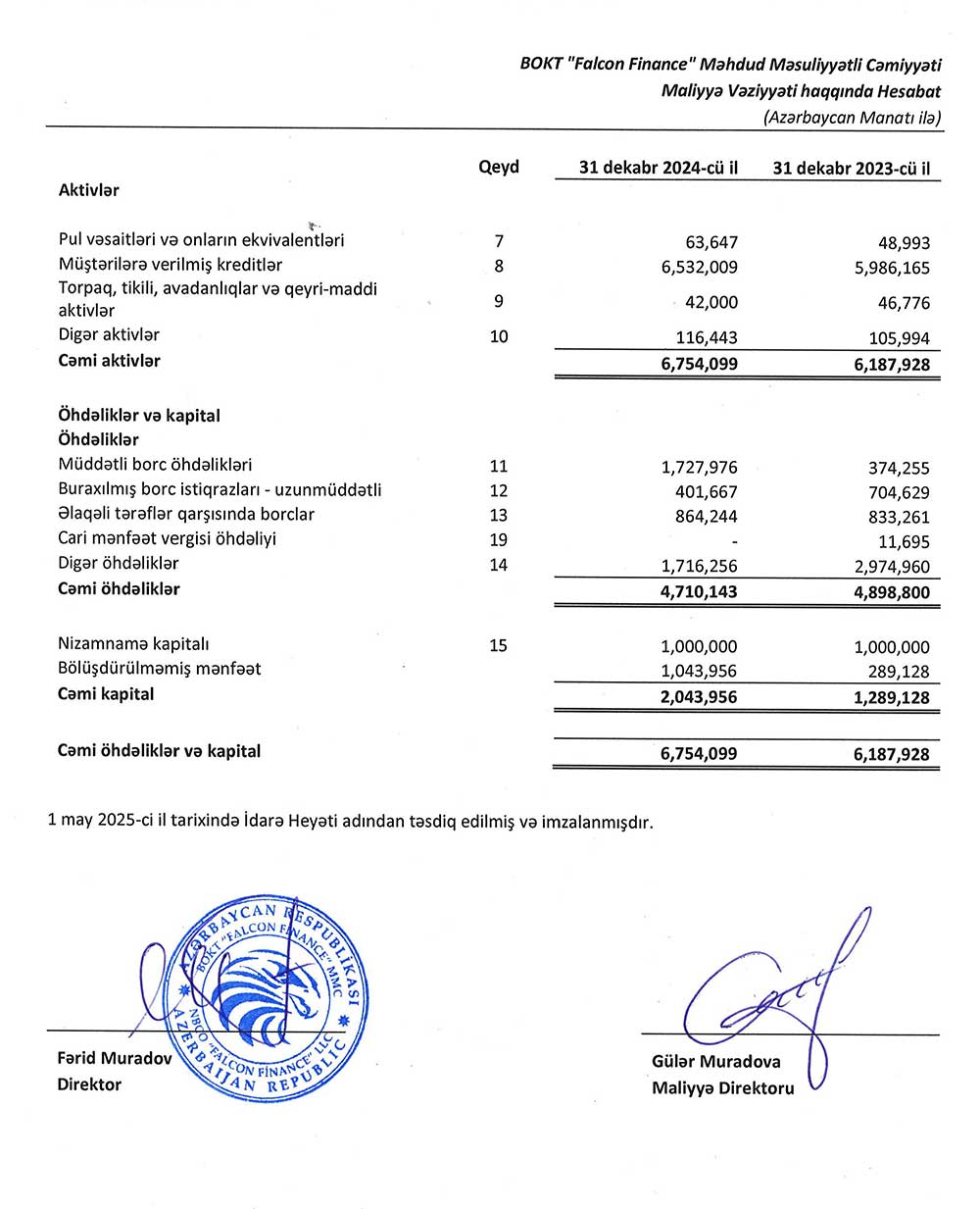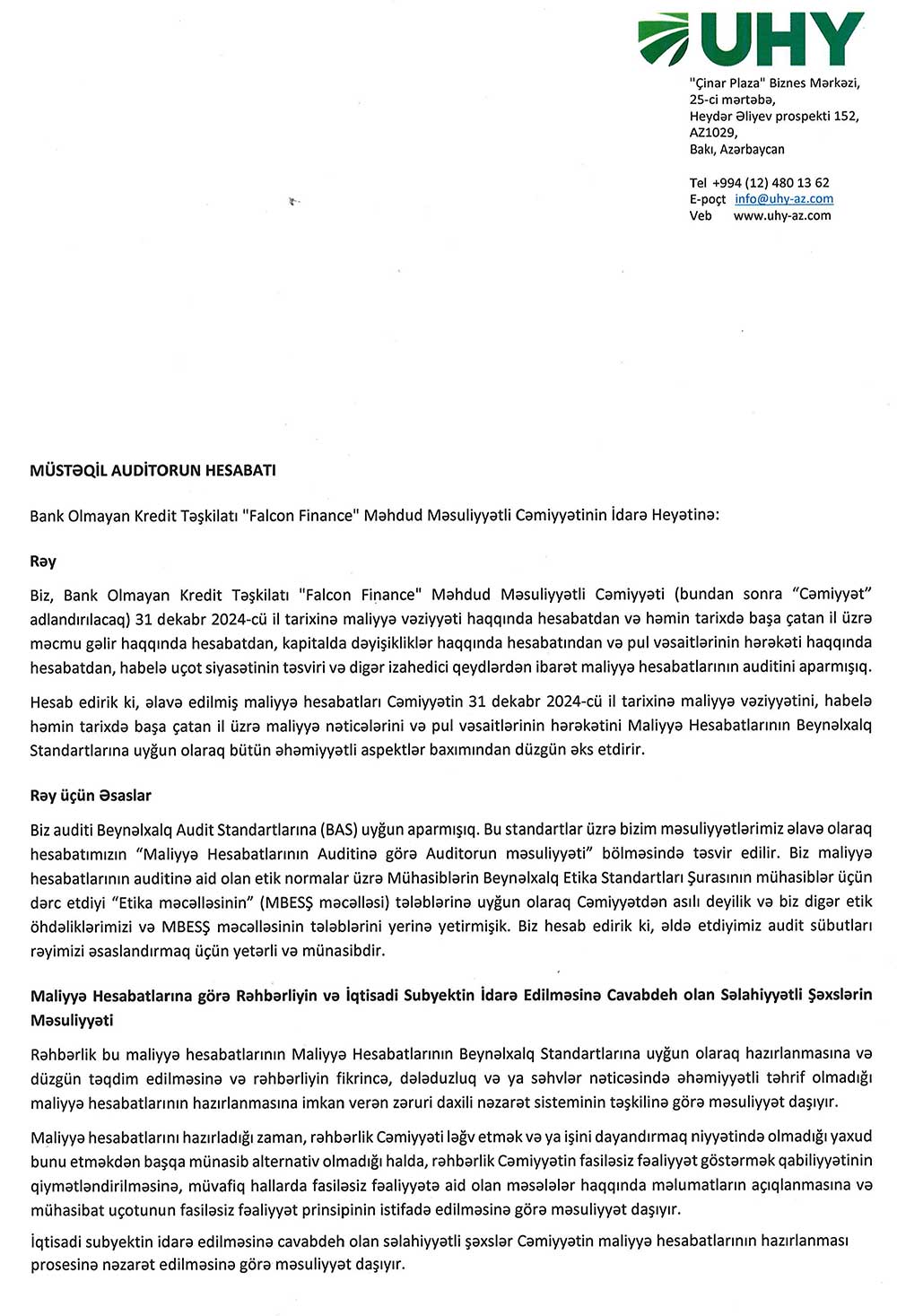 Bank Olmayan Kredit Təşkilatı "Falcon Finance" MMC-nin 31 dekabr 2024-cü il tarixində başa çatmış il üzrə maliyyə hesabatları – ƏTRAFLI